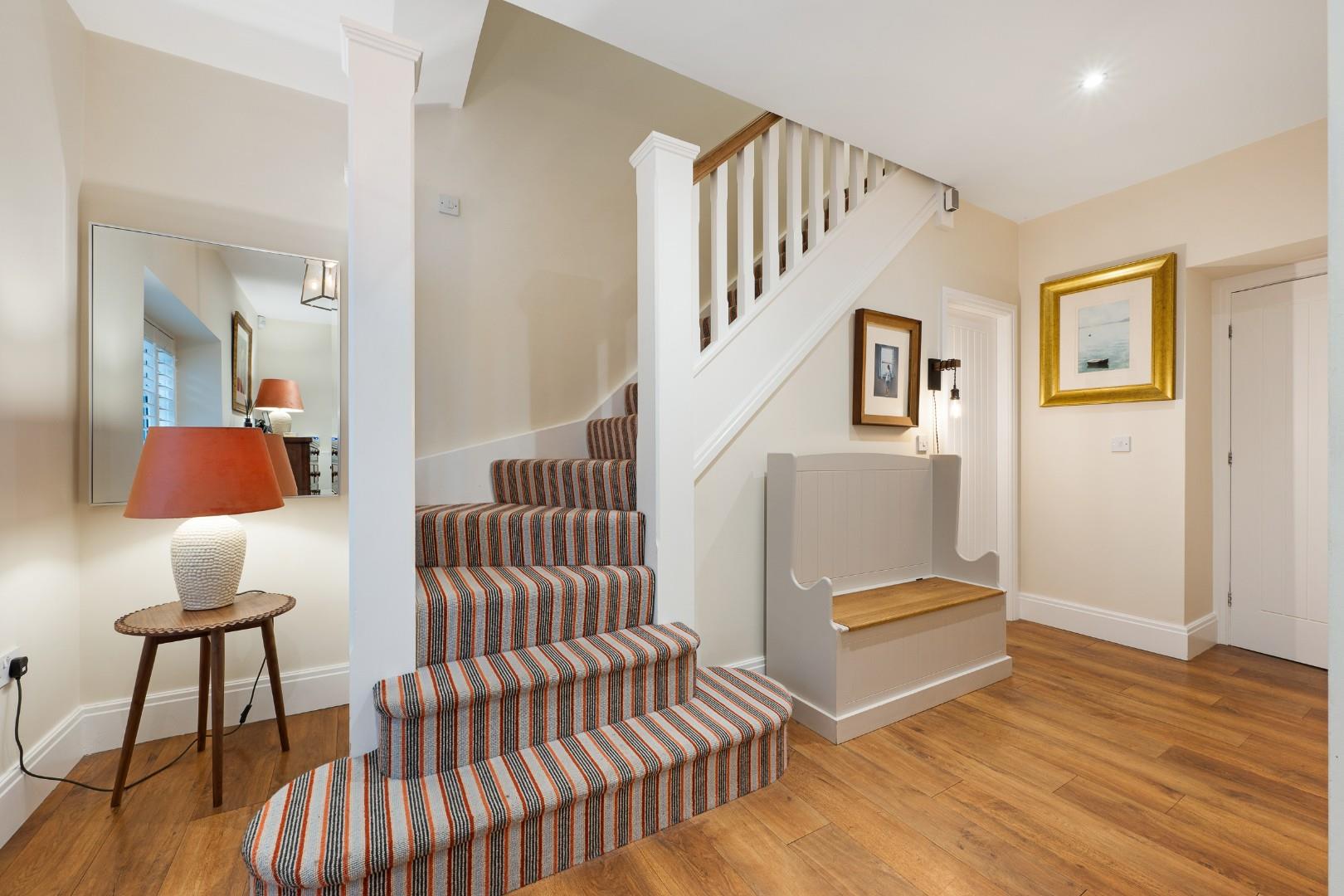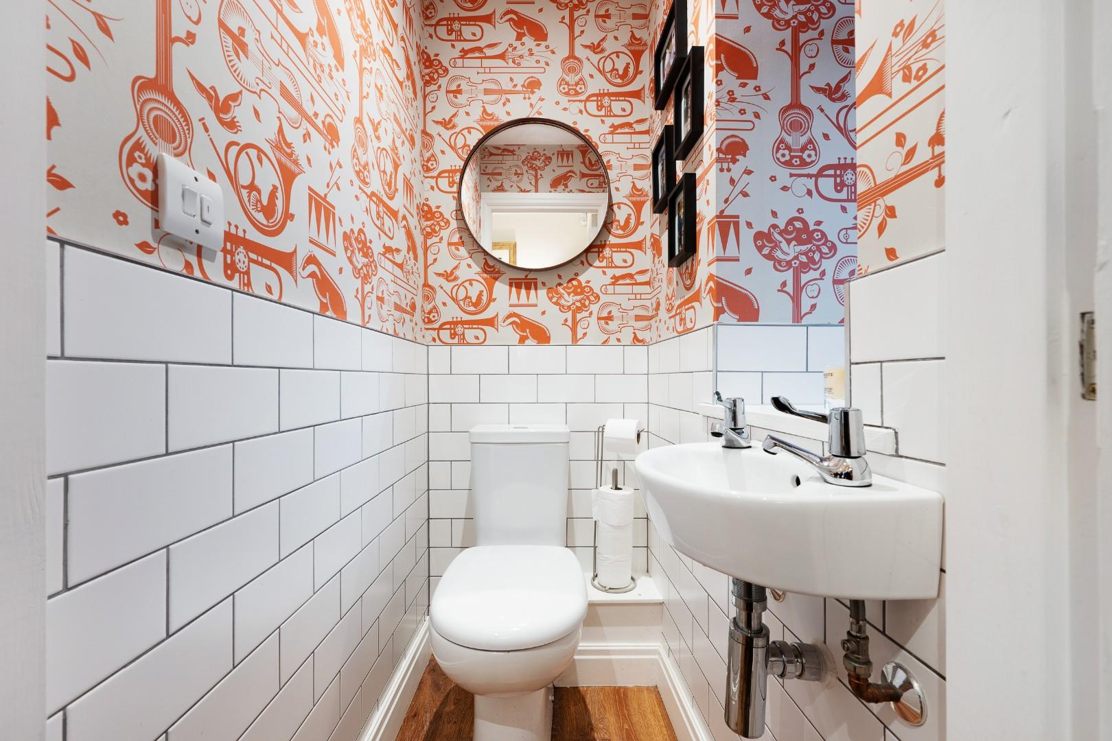 Off the entrance hall by the front door is a downstairs WC fitted to modern standards with half tiled walls, and a substantial cupboard giving even more storage.