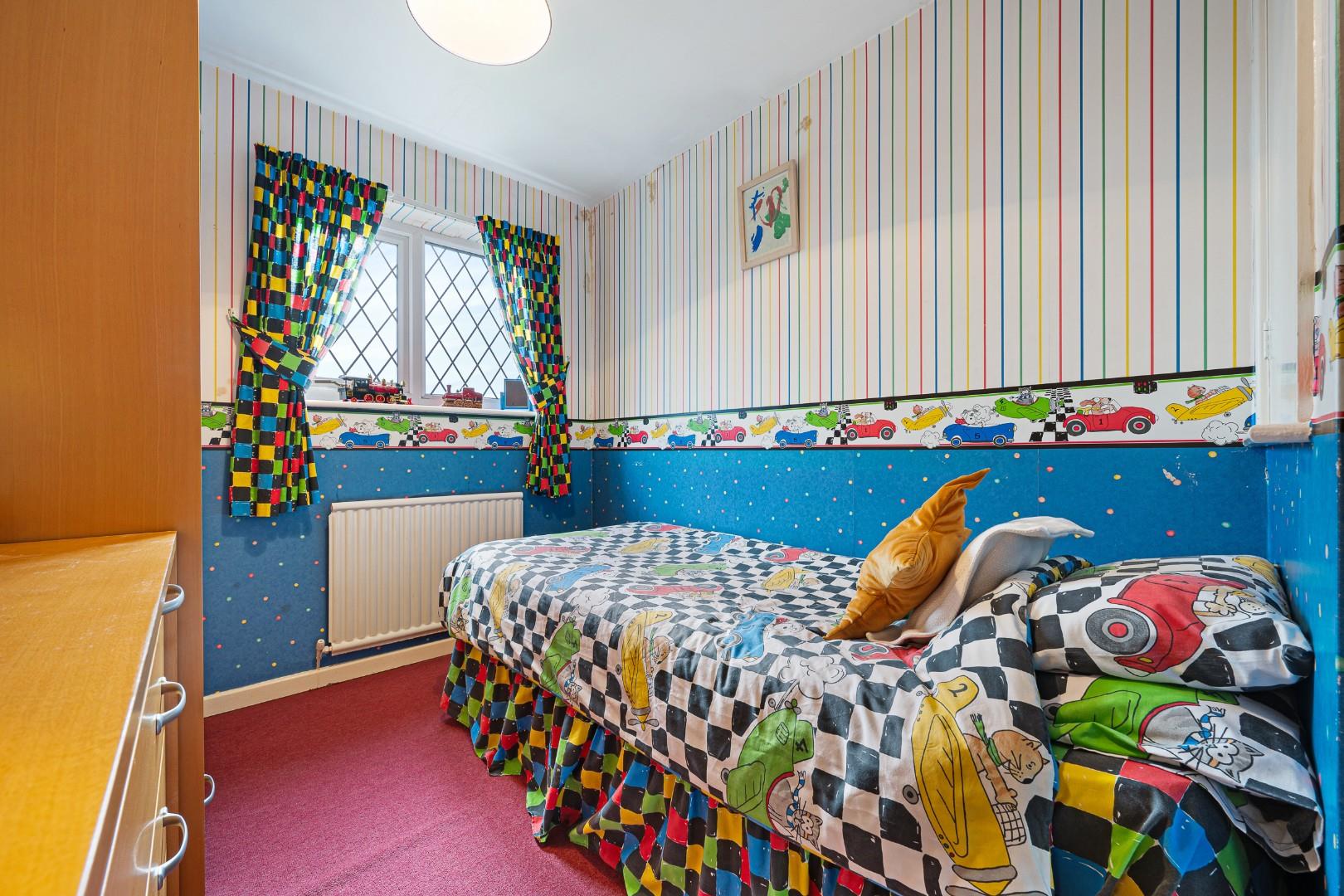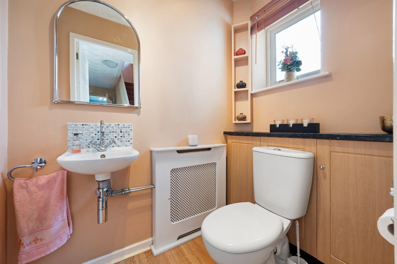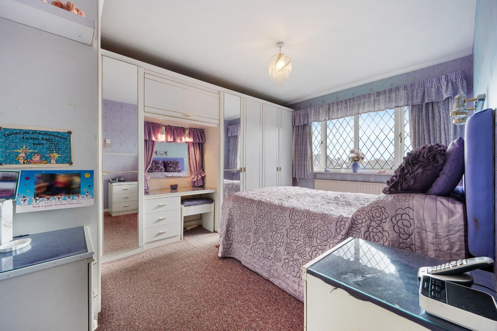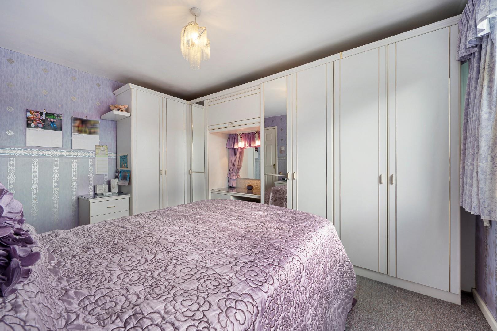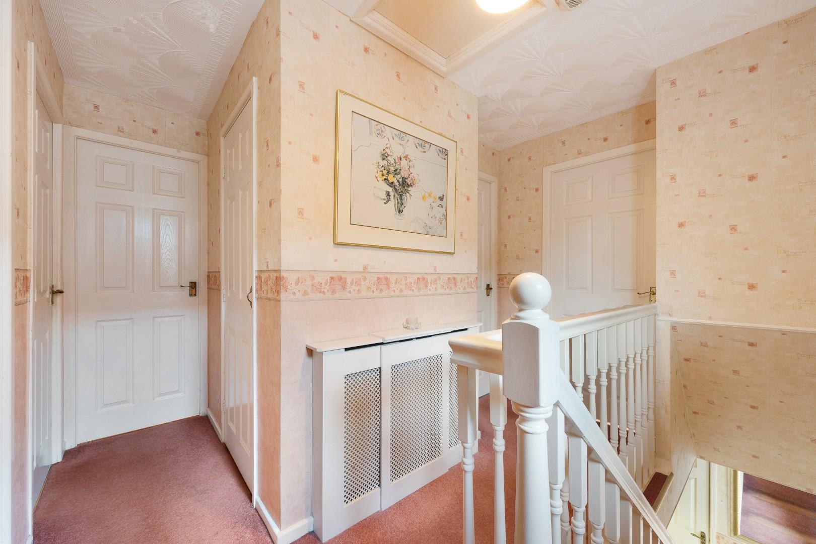 To the first floor, the property offers four bedrooms arranged around a central landing. The main bedroom is generously proportioned and benefits from extensive fitted wardrobes. Two further double bedrooms provide comfortable accommodation, while the fourth bedroom offers flexibility as a nursery, guest room or home office. A family bathroom serves the bedrooms and is fitted with a bath, wash basin and WC.