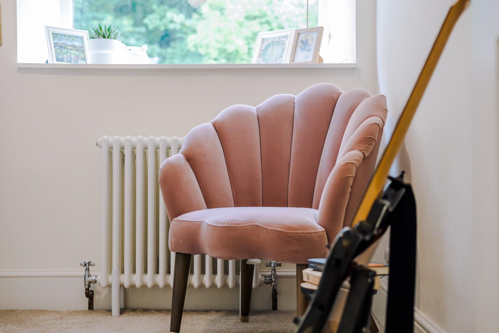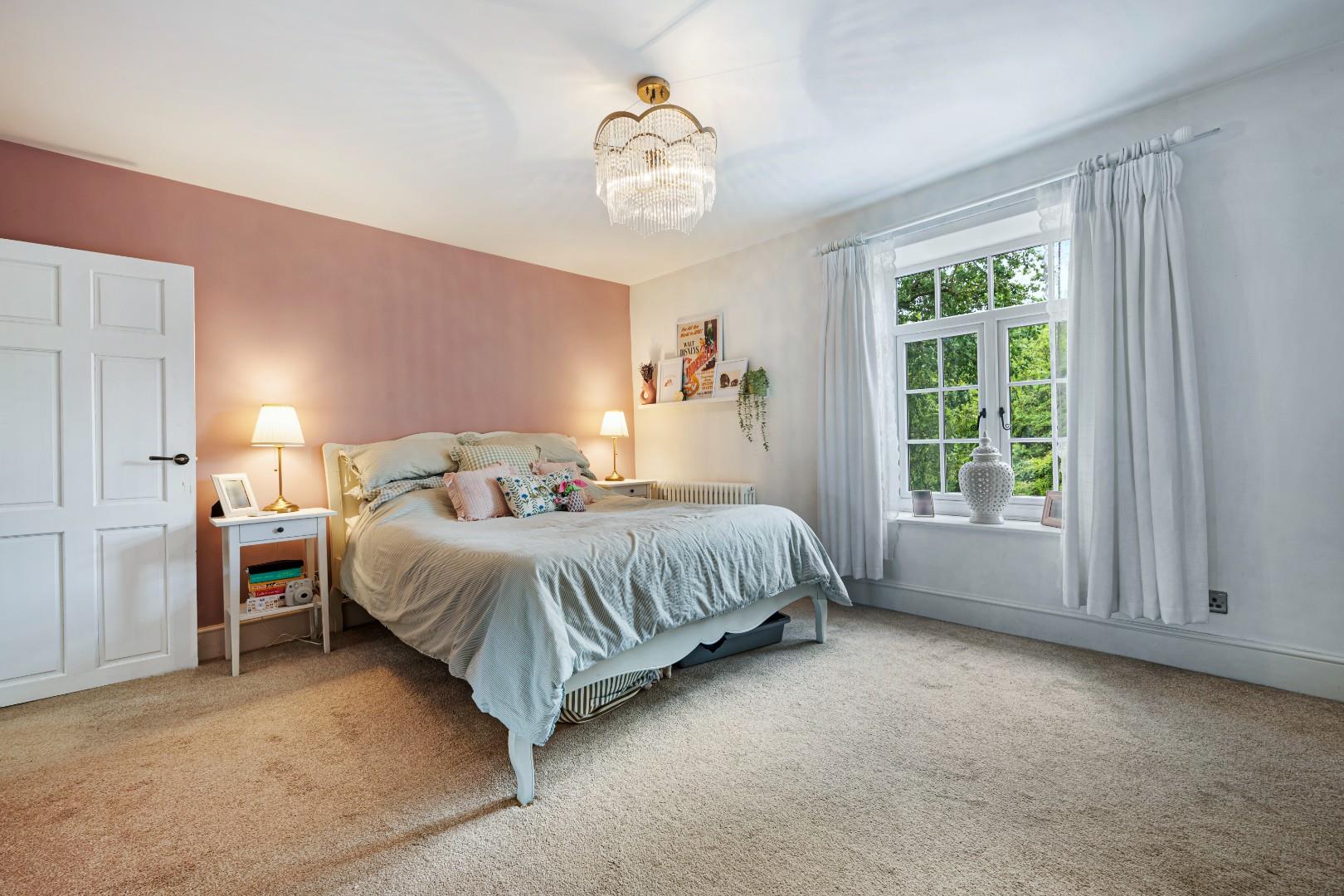 The unique 90-degree staircase adds further charm as it leads to the first-floor landing, where both bedrooms and the bathroom have been finished to an excellent standard. The master bedroom is exceptionally spacious, enjoying newly installed fitted wardrobes and peaceful green outlooks to the rear — a tranquil space to start and end each day. The second bedroom includes a cleverly integrated fitted bed and storage, offering very practical proportions for a guest room, child’s room, or home office within this charming cottage layout.