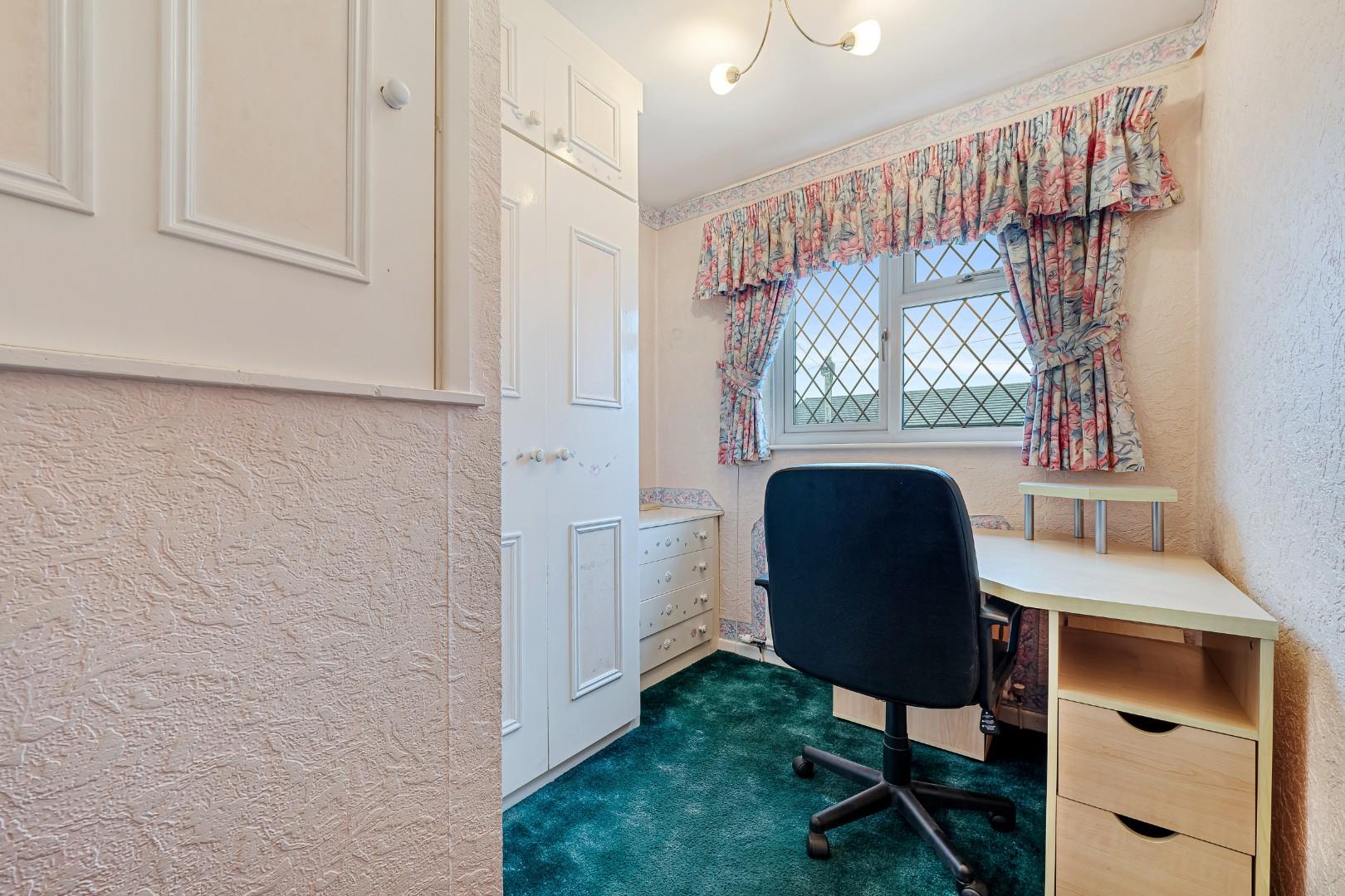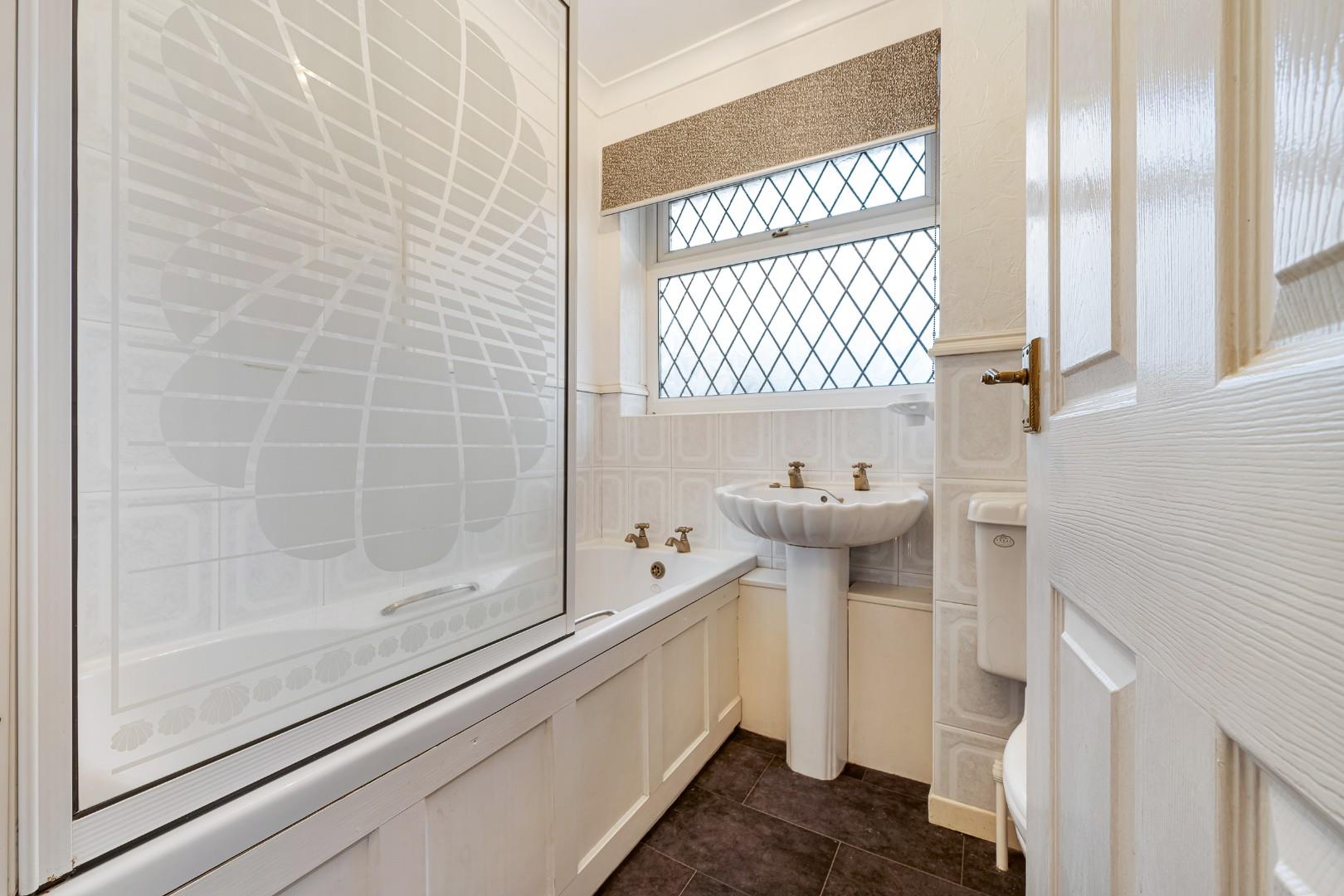 Upstairs, each of the three bedrooms is complete with a comprehensive range of fitted furniture, and all bedrooms offer scope for cosmetic upgrades if desired. Within the family bathroom is a three-piece suite including a bath with shower over, wash basin, and WC.