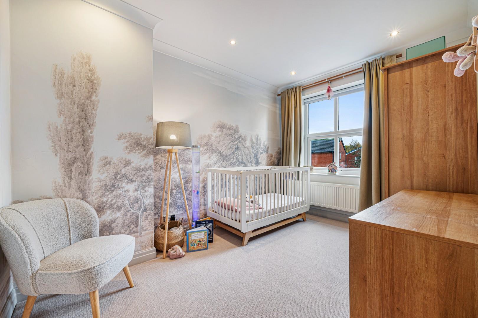 Boasting a very generous size and continuing the stylish interior design, with a comprehensive range of contemporary fitted wardrobes and dressing area, the master bedroom is an impressive room which like the rest of the home you can simply move into, unpack and enjoy. The two front windows create a fresh, airy feel while affording views toward Winter Hill.