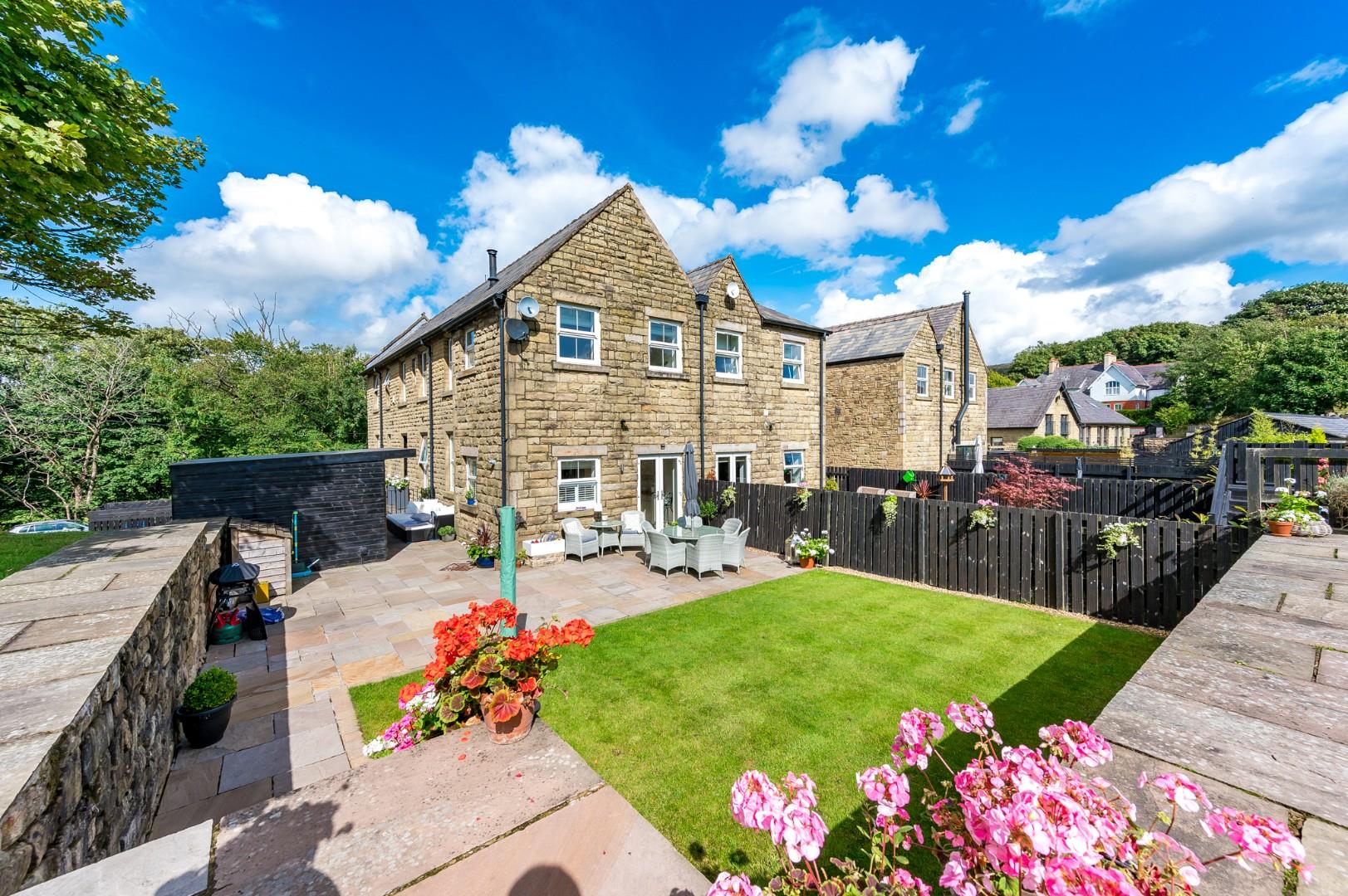 Welcome to No.4 Haworth House. Surrounded by open countryside with easy access to the amenities of Edgworth, this deceptively large, converted period property boasts stunning interiors which are presented in immaculate condition throughout. High ceilings and huge windows showcase the character while creating bright and airy spaces, its generous size provides plentiful practicality. Haworth House is a selection of luxury townhouse-style properties which were created through a conversion that was part of the Crowthorn Estate built in 1876, originally a Victorian school. And this particularly property benefits from an end position. A beautiful feature staircase sits in the centre of the property, connecting the three floors of accommodation. To the ground floor is an entrance hall, large utility room, shower room, and one of the four double bedrooms. On the first floor is an open plan kitchen and family room which flows in an open aspect onto the dining room at the rear, in addition to a WC on the landing and the main lounge at the front. On the second floor is the master bedroom with en-suite, two further bedrooms, and family bathroom. Externally the property features parking for three vehicles, a garden room/studio, and an extensive, south facing, landscaped garden to the rear backing onto open fields. Despite its quiet rural setting, it is only a 10-minute drive to the national motorway network via the M65.