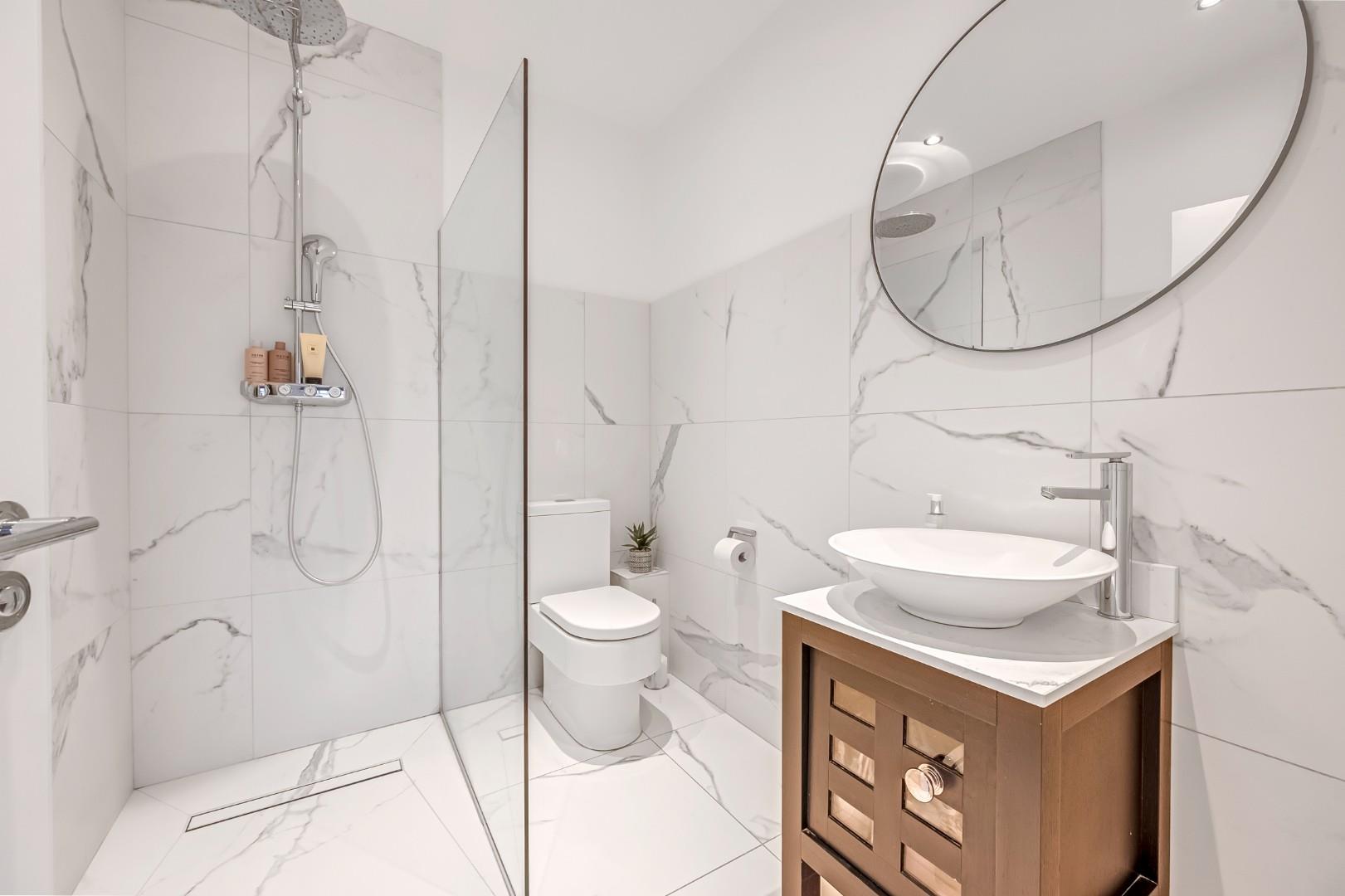 The second floor is home to a superb master suite, positioned above the lounge, with a notably generous footprint. Its en-suite is finished to a luxurious standard, featuring marble-tyle tiling, a large wet-room style walk-in shower, contemporary feature wash basin, and WC. The main family bathroom complements this with a freestanding feature bath, matching wash basin, and WC, combining both elegance and function.