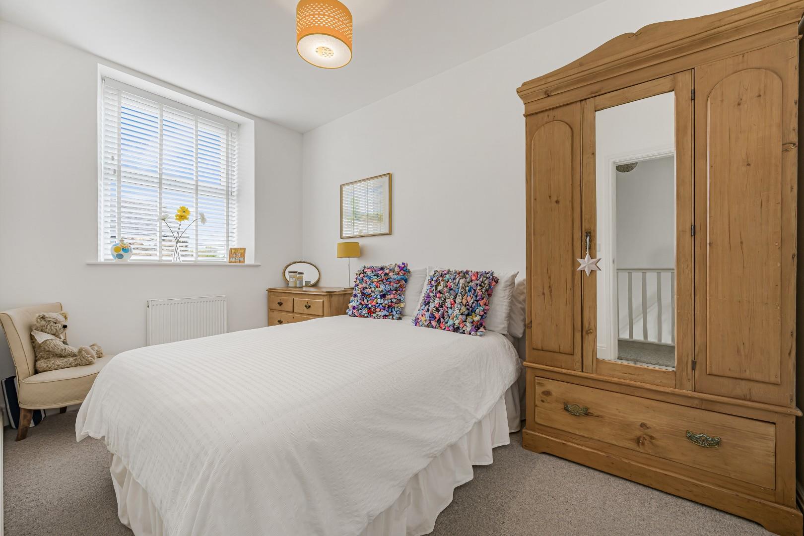 The second bedroom is equally well-presented and good size double ideal as a guest room or home office. The room benefits from a bright and airy feel, complemented by neutral tones and quality flooring. Thoughtfully arranged, it offers space for essential furniture and enjoys a pleasant outlook.