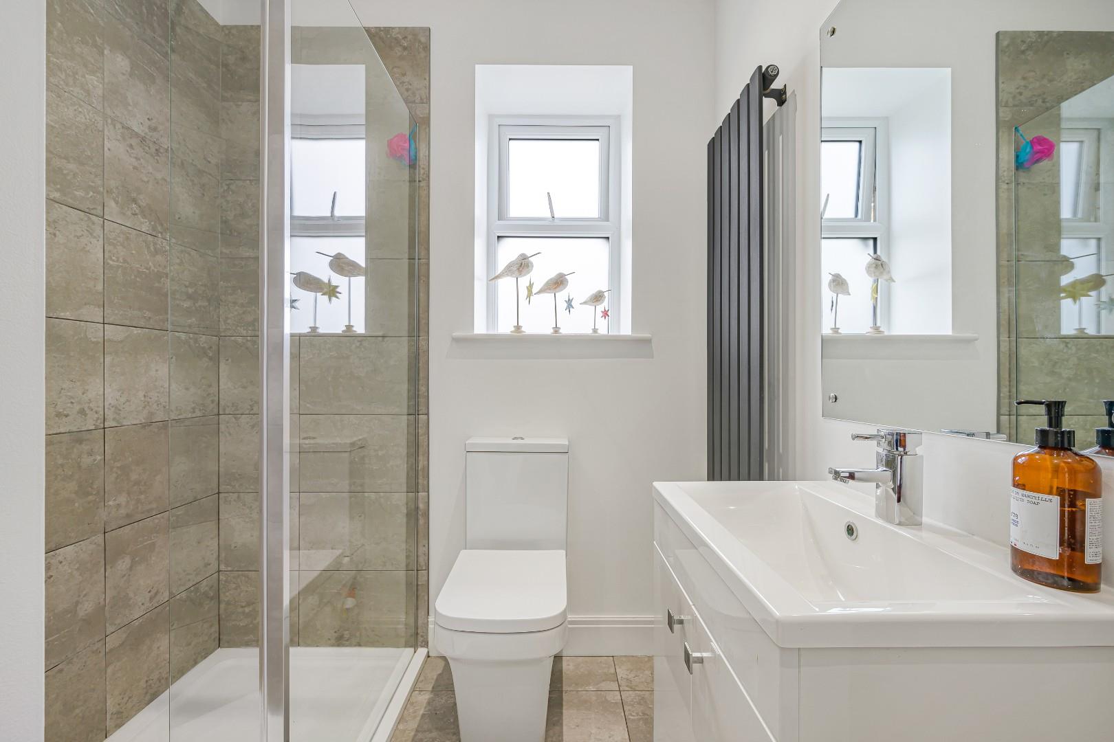 - Stylish shower room with walk-in rainfall shower