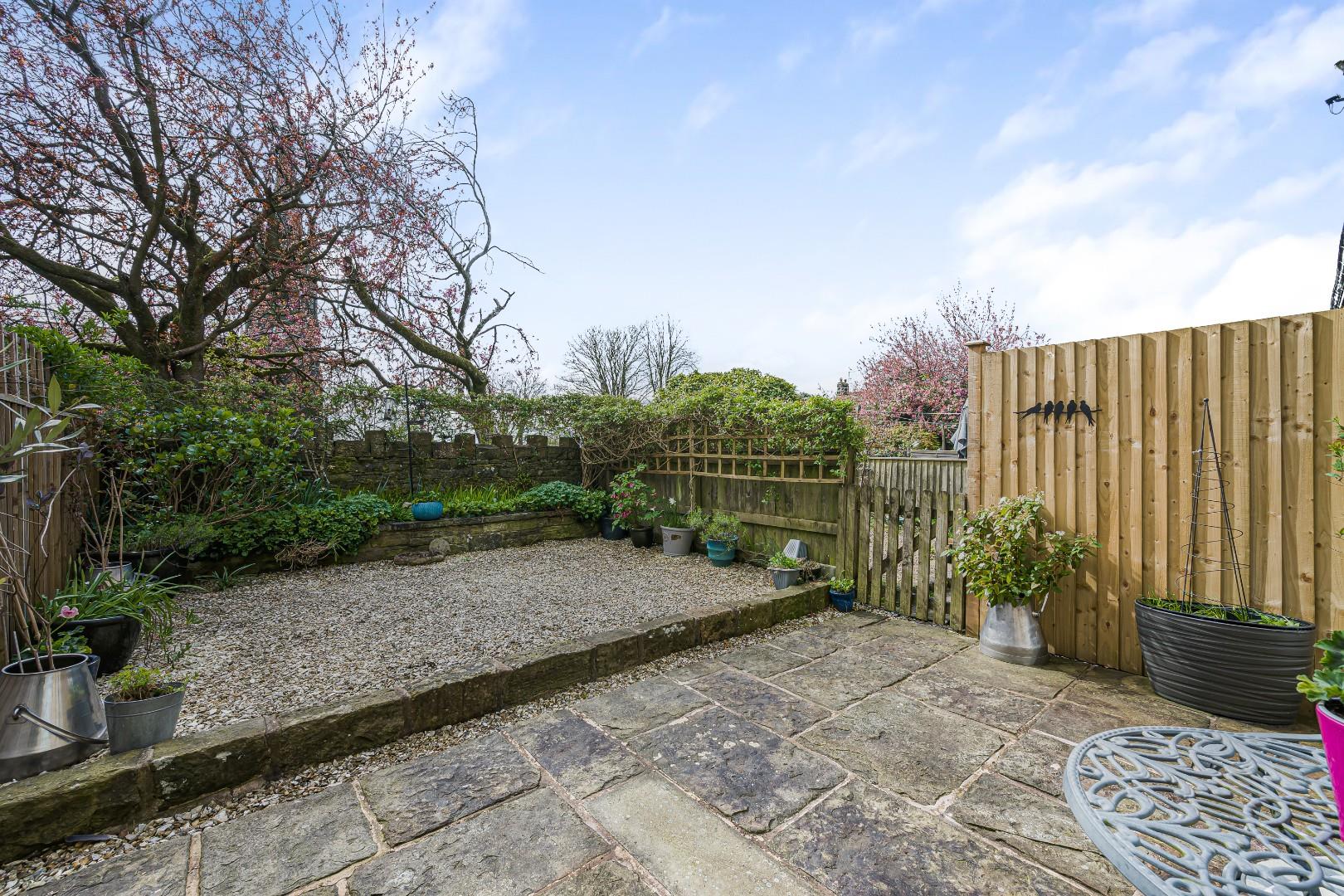 - Private, low-maintenance garden with patio area
