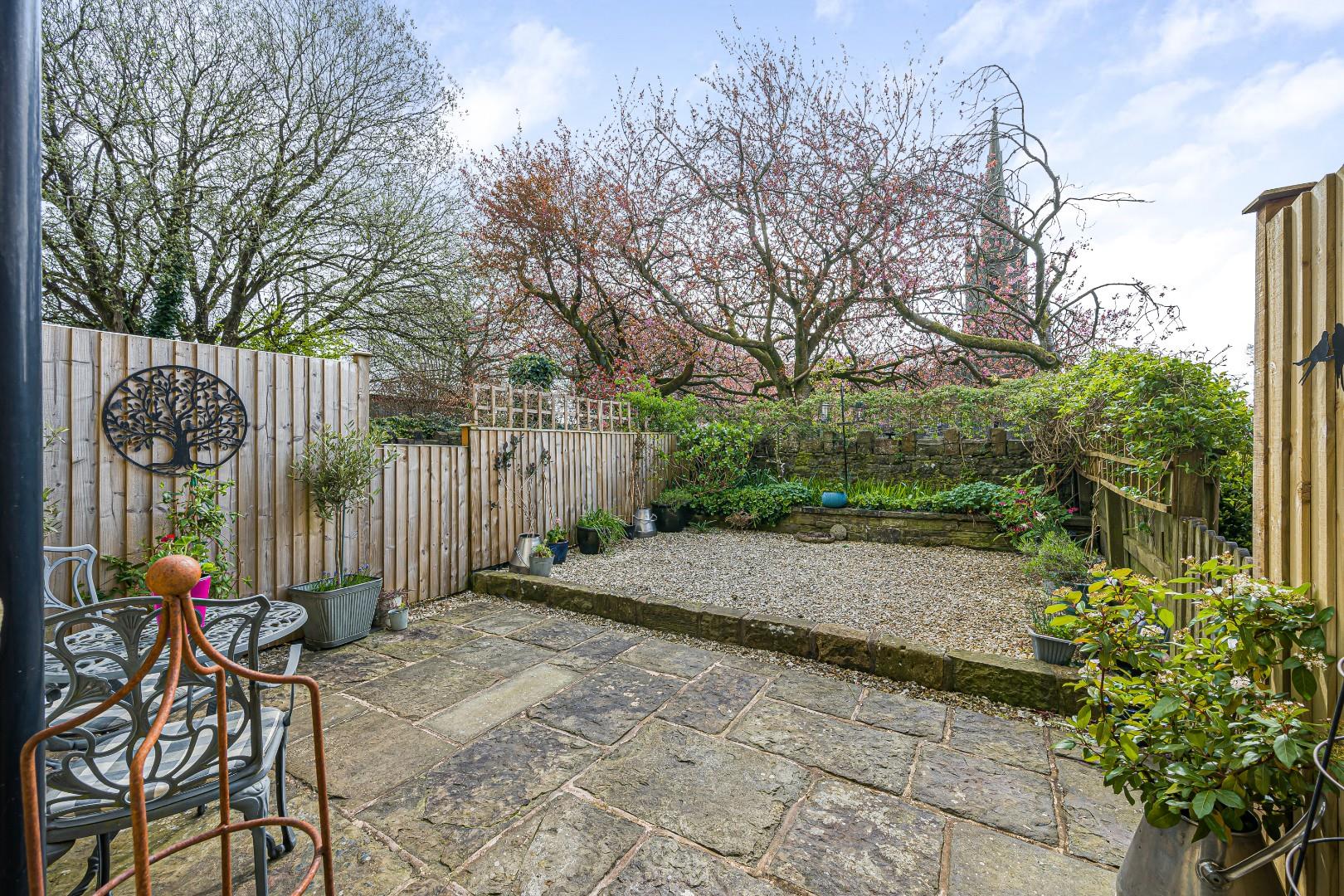 Externally, the property enjoys a charming and low-maintenance outdoor space, thoughtfully designed to provide a private and inviting setting pleasant outlooks over St. Annes church.. A paved patio area sits directly outside the property, offering an ideal spot for outdoor dining or relaxing, with space for seating and entertaining. This is complemented by a gravelled section, bordered by fencing and established planting, creating a pleasant and well-defined garden area with a touch of greenery.