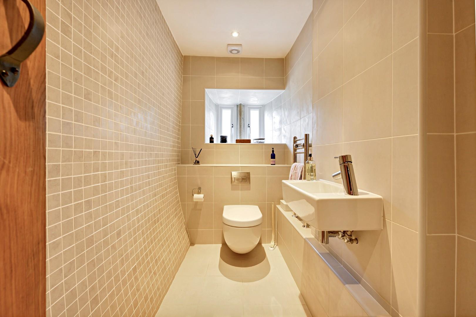 Further practical aspects on the ground floor include a porch for extra storage, and the downstairs WC which is fully tiled with Villeroy & Boch sanitaryware and Hans Grohe brassware – a high-quality finish which is also found in each of the bathrooms upstairs.