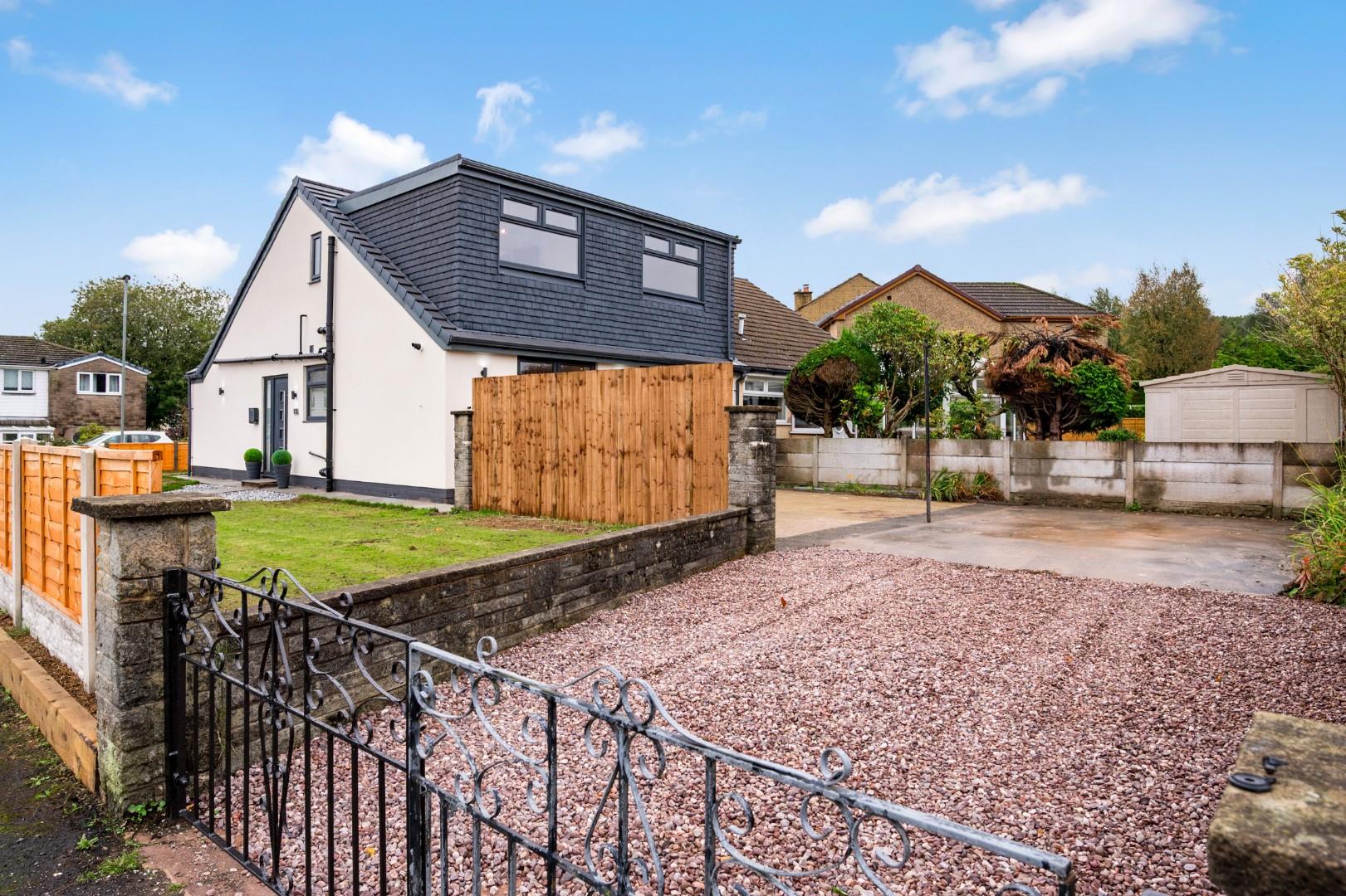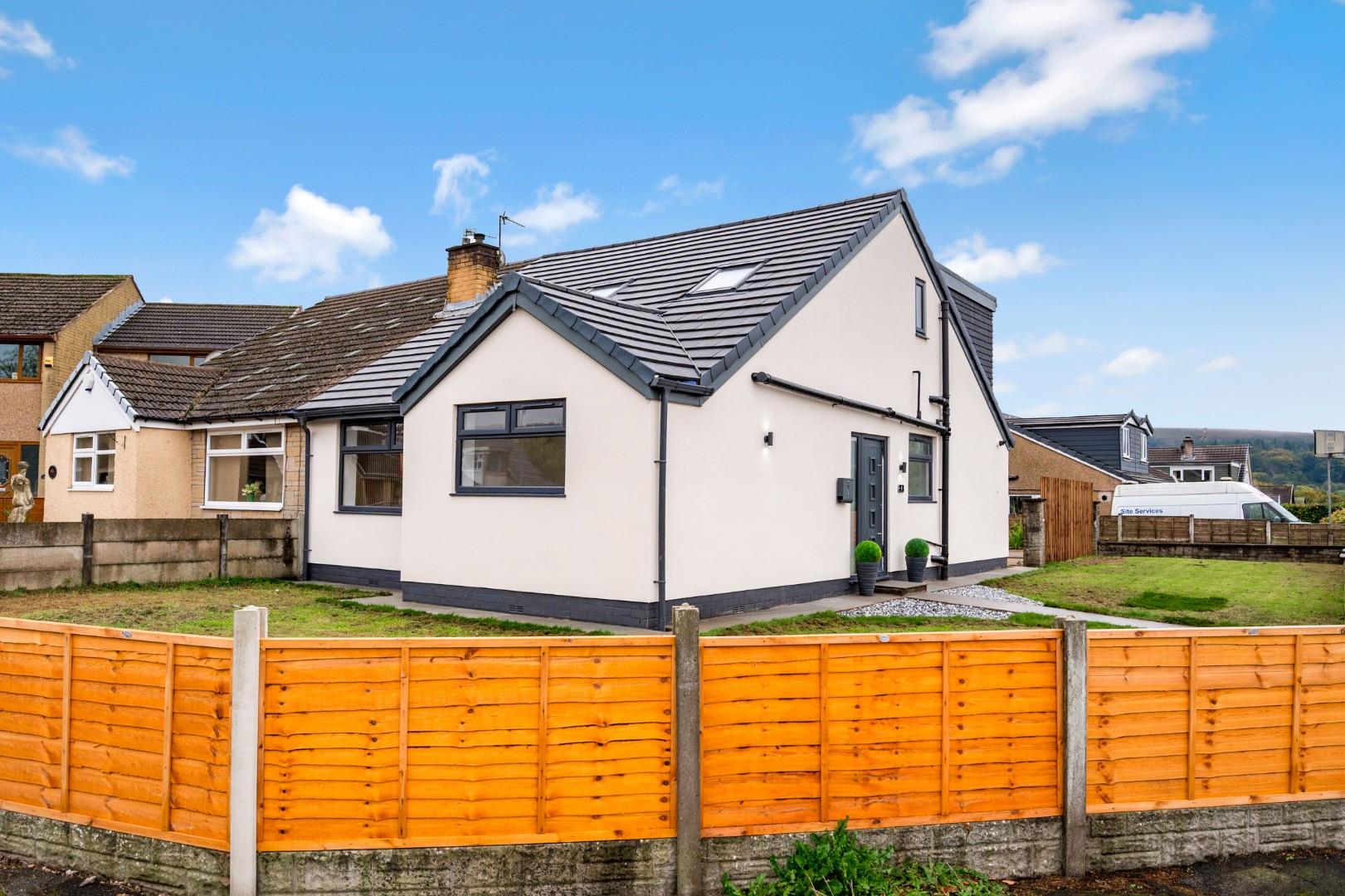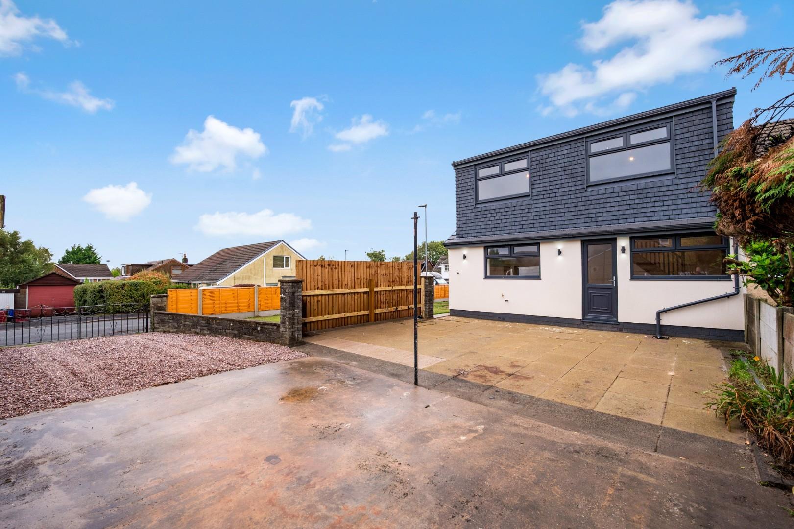 No chain! Situated on a large corner plot in a quiet cul-de-sac within the well-established residential area of Cranberry, Darwen, this semi-detached dormer bungalow has been fully renovated to create an impressive home which is ready to move into with new, high-quality fittings and finishes throughout.A brief overview of the ground floor accommodation includes an open plan kitchen, dining and living room, front lounge, spacious entrance hall with cloak store and separate downstairs WC, and a large double bedroom or versatile reception room. Upstairs are three more double bedrooms with an en-suite to the master, and a family bathroom. Externally the large corner plot features lawns to the front and side, a generous, paved back garden and a gated tandem drive.