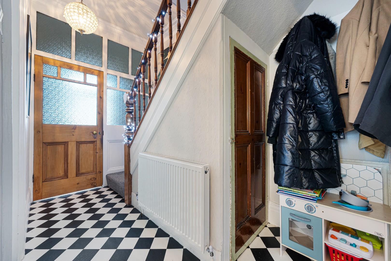 The character is immediately evident as you step inside through the original hardwood door painted a lovely light blue with decorative glazing to complement, and within the integral porch the original tiled flooring and Lincrusta wall coverings are incredibly well presented, giving a nod to the period character. The original doorbell is still intact too! All of which is testament to the love and care this charming home has received over years gone by. Beyond the integral porch a traditional hallway invites you in to explore the living space…