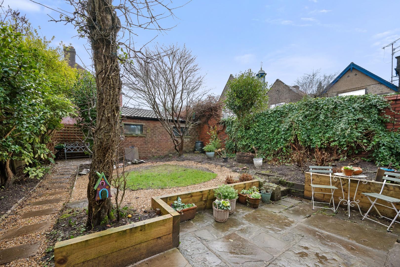 The secluded, south-facing rear garden is quaint and has recently been relandscaped, including the patio being extended and a garden path installed with Indian stone and stone golden gravel. A Japanese acer will give beautiful shades of red when in bloom, and this lovely garden is sure to burst into vibrant splashes of colour during the spring and summer months, with mature beds and borders that complement a central lawn. The patio offers a private spot for eating outdoors on warm summer days, and the garden path leads to the detached garage with lighting and power, offering more space for storage. The garage would alternatively be suitable for use as a workshop, or for converting into a studio office or gym.