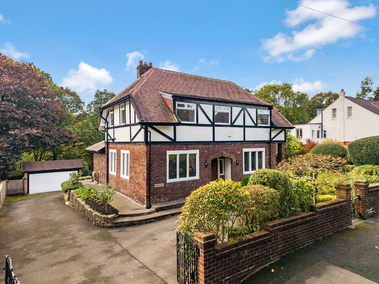 Benachie is an individual detached home situated on a huge plot within the highly desirable location of Hawkshaw Avenue, bordering the leafy green Sunnyhurst Woods. With 2,000 sq ft of acccommodation and large rooms throughout, this house is highly suitable for family life. It is overflowing with character and charm, making it particularly attractive for buyers looking for a unique property to call home. The property has clearly been well cared for and is presented in immaculate condition, while offering its new owners the opportunity for modernisation.A brief overview of the ground floor accommodation includes a central entrance hall, lounge, dining room, open plan kitchen and dining/living room, conservatory, and downstairs WC. To the first floor is a gallery landing, family bathroom, additional WC, three large double bedrooms and a smaller fourth bedroom currently used as an office.Externally the property is surrounded by mature gardens with several patio areas, a large tandem drive, and an additional 500 sq ft of internal space via a detached double garage with an attached storeroom/office, and greenhouse.