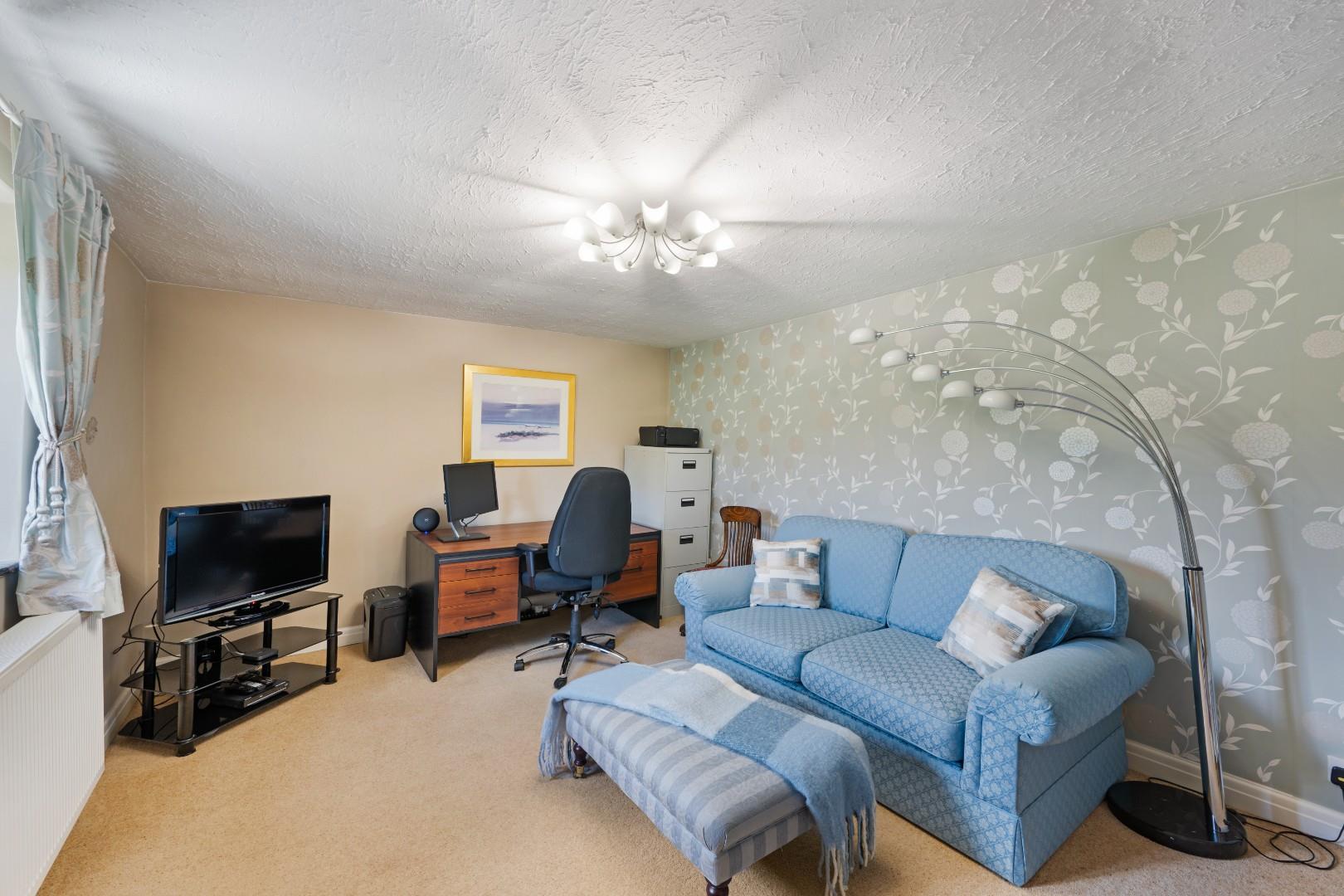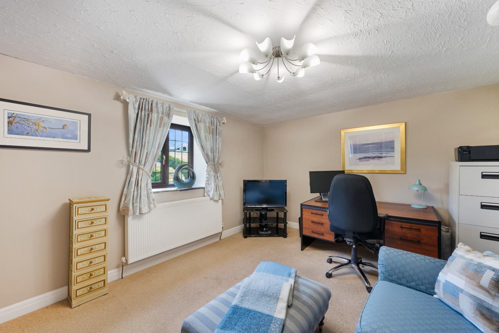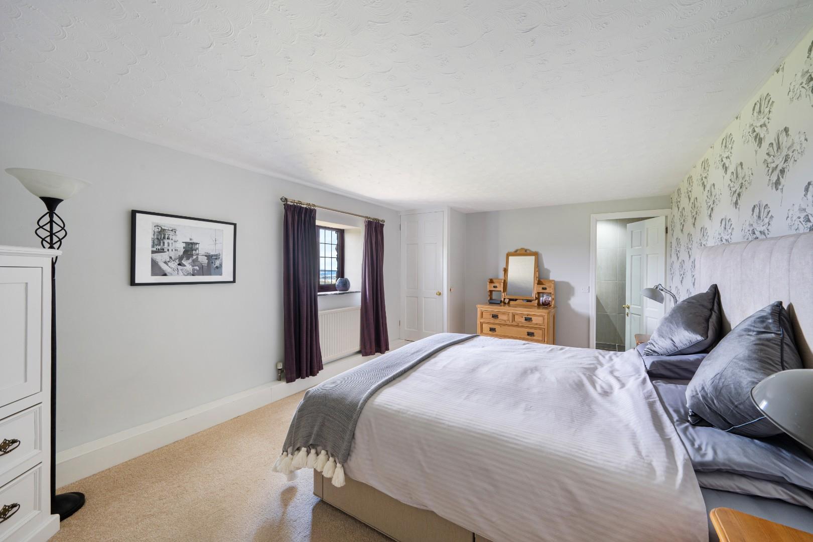 The principal bedroom benefits from its own dressing room with fitted furniture, along with a three-piece en-suite shower room, creating a private and practical retreat. The remaining three bedrooms are all generous doubles, each enjoying ample space for freestanding furniture.