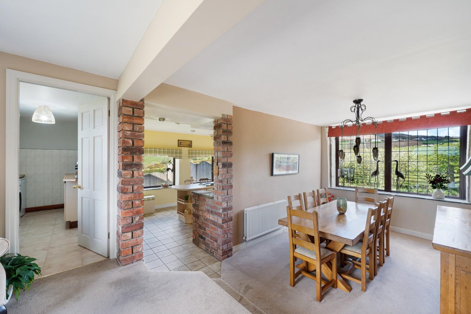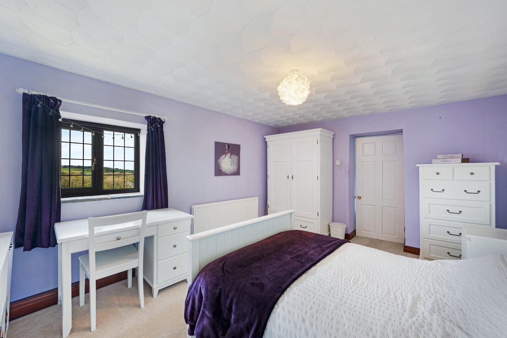 To the first floor, the property offers four well-proportioned double bedrooms, all providing comfortable and versatile accommodation suited to family living, as well as far reaching scenic views.