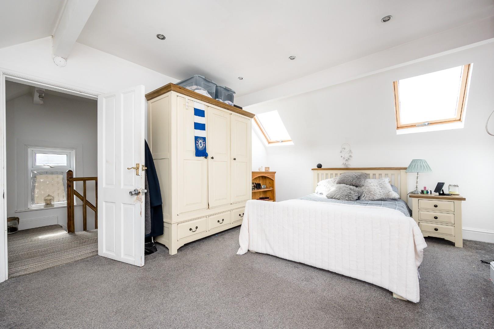 On the first floor are three of the four bedrooms, two of which are large doubles, and the family bathroom. Not dissimilar to the rooms downstairs, the high ceilings create an airy and spacious feel. The family bathroom is presented to contemporary standards with tiling to the floor and walls, and features a three-piece suite comprising freestanding tub, vanity basin with integral storage units, and WC. Up another set of stairs and the second floor provides the fourth bedroom, another large double, with Velux windows allowing plenty of natural light to pour in. The second floor also features a contemporary shower room with walk-in shower, wash basin and WC.