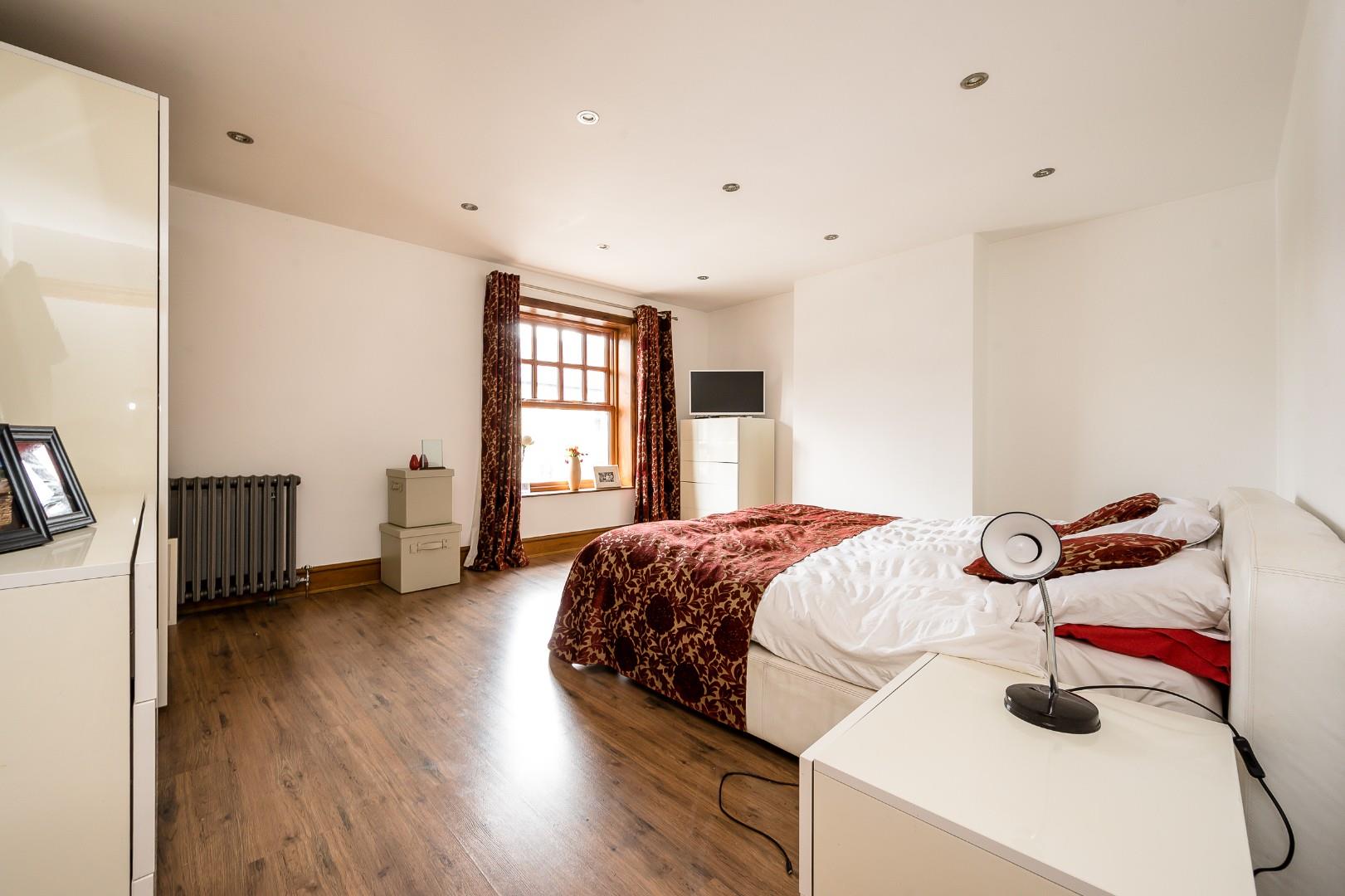 On the first floor are two large double bedrooms with the largest/master situated to the front. And like the downstairs living space the character continues with feature radiators giving a nod to the property’s heritage. Above the kitchen to the rear is a spacious family bathroom with slate-effect tiled floor and white brick tiling to the walls which adds to the industrial style period design, and perfectly complements the Victorian style suite including freestanding bathtub, wash basin, WC, and a more modern walk-in shower with glass façade.