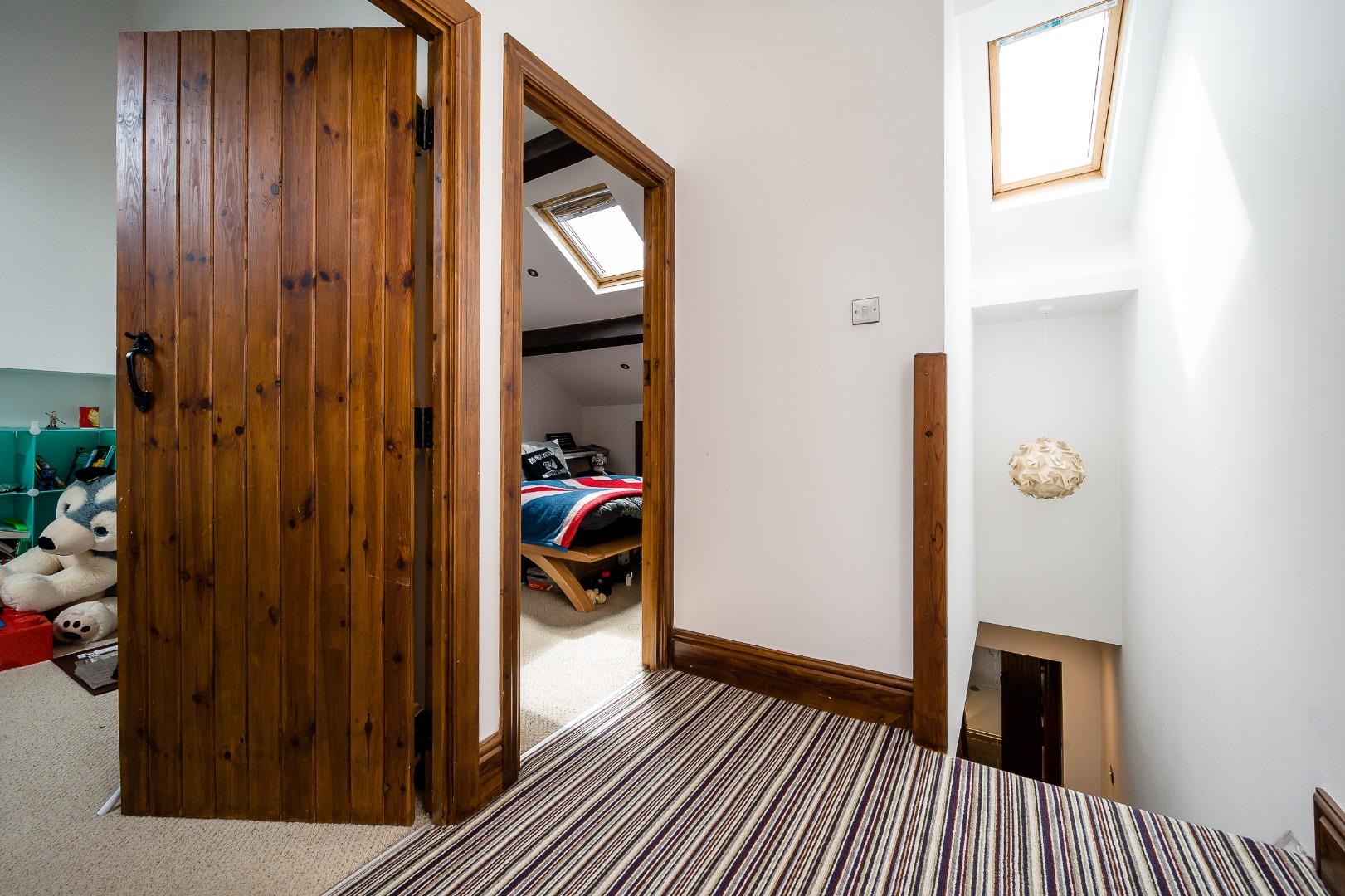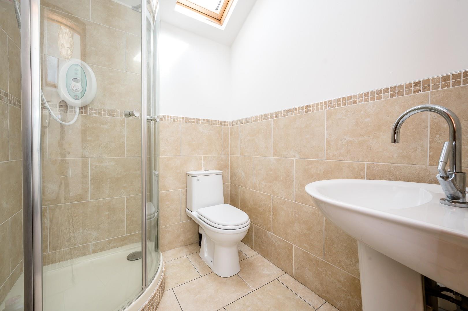 Up another flight of stairs flooded with natural light from the Velux above and the landing on the top floor connects a shower room and the two other doubles. These top two doubles are also generous in size and are fantastic rooms for the kids, with ample room for them to have their own space, and the vaulted ceilings and Velux windows give it a cool and quirky feel. The bedrooms on the second floor also benefit from having their own shower room, which comprises a walk-in corner shower, wash basin and WC, and again benefits from a vaulted ceiling and Velux window.