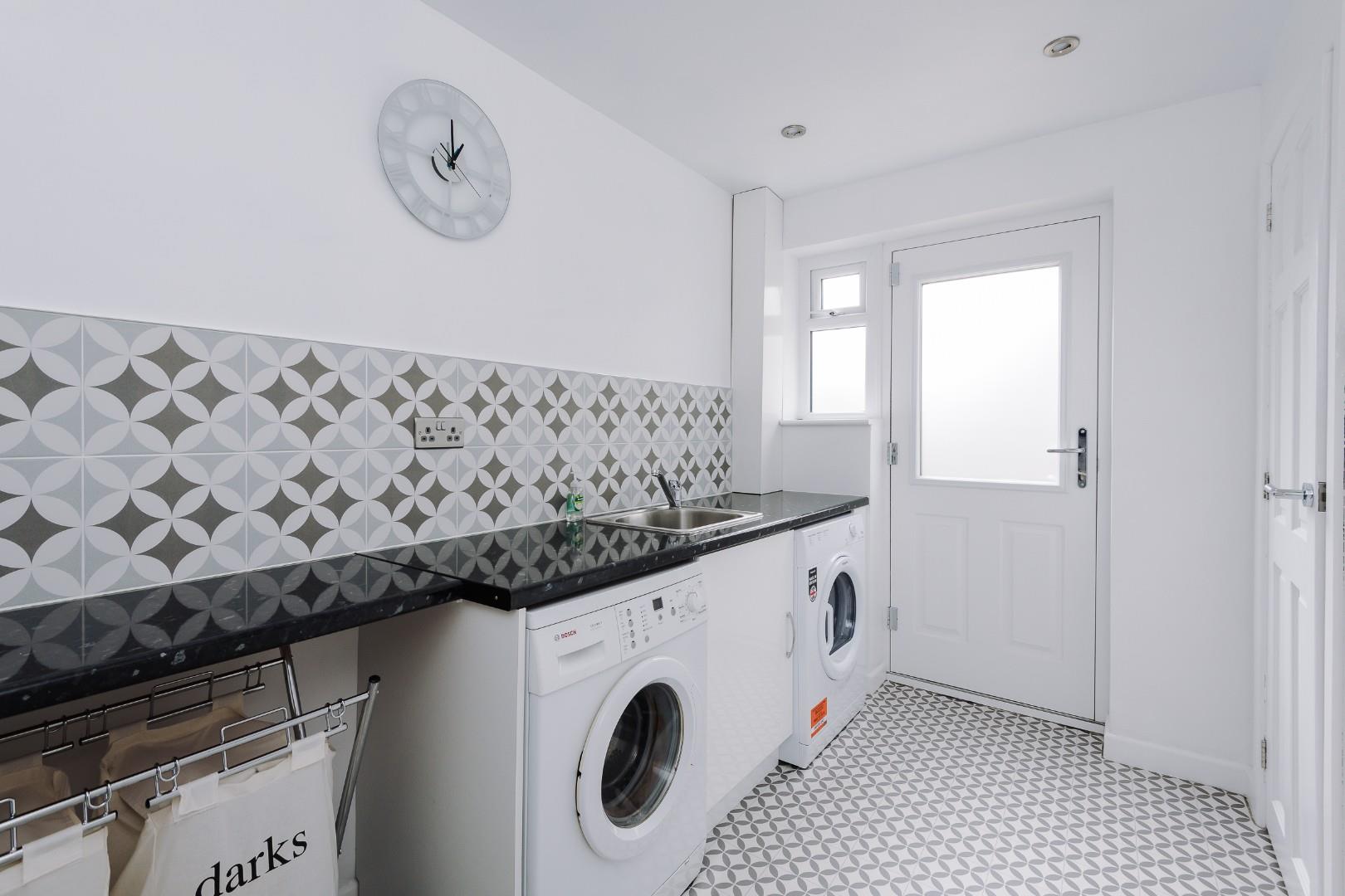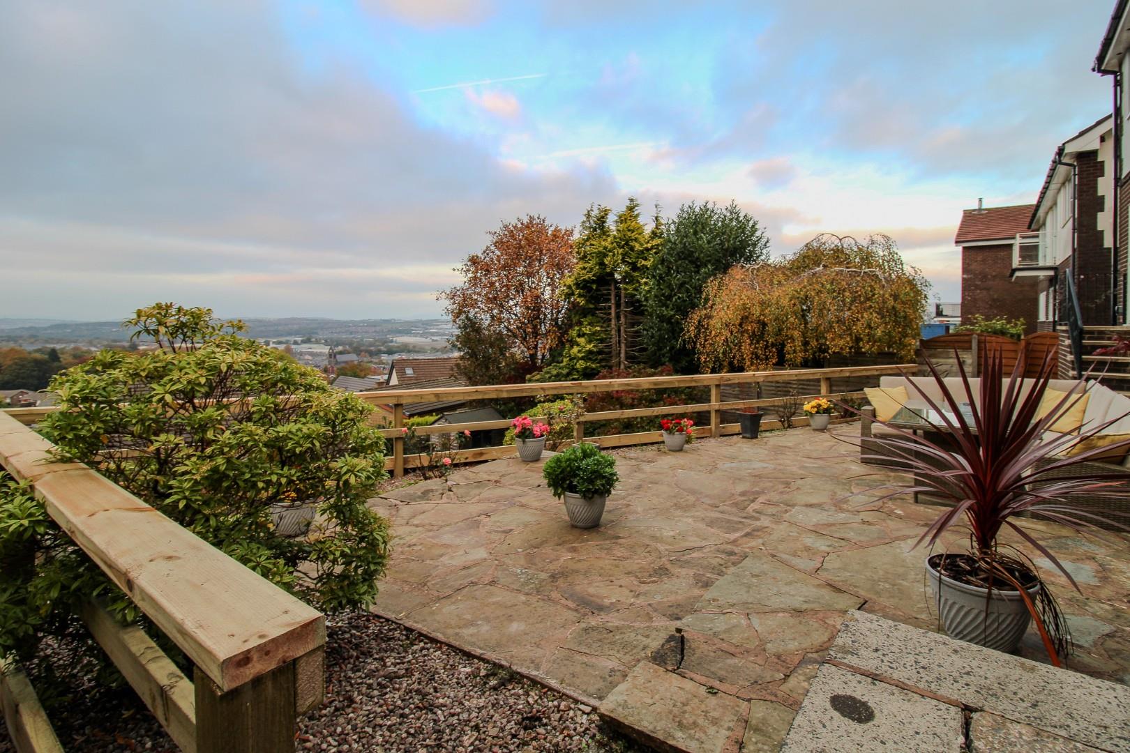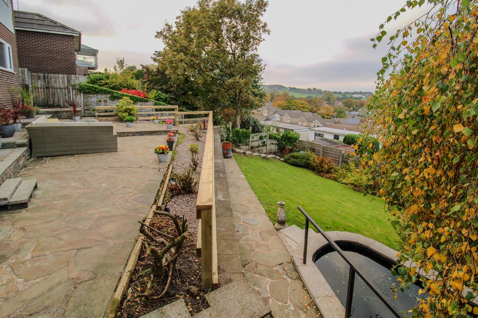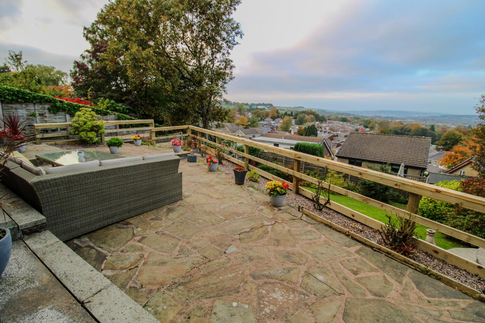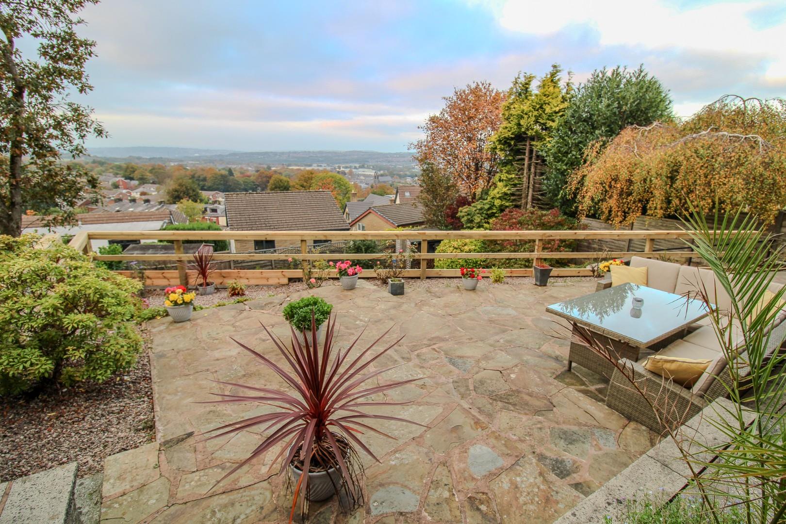 On the lower floor you have the versatility of a second lounge / fifth bedroom with patio doors leading to the rear garden, there are four additional bedrooms, two including the master bedroom have excellent views to wake up to. The modern family four piece bathroom and tucked away utility room complete the downstairs. Outside there landscaped easy to maintain gardens to the front with tiered indian stone flagged areas, a wide driveway providing parking for at least three cars leads to the garage. The rear garden is a good size and this is where you can sit back and admire the vista beyond. There are flagged patios, ornamental pond and lawns providing plenty of space for children to play.