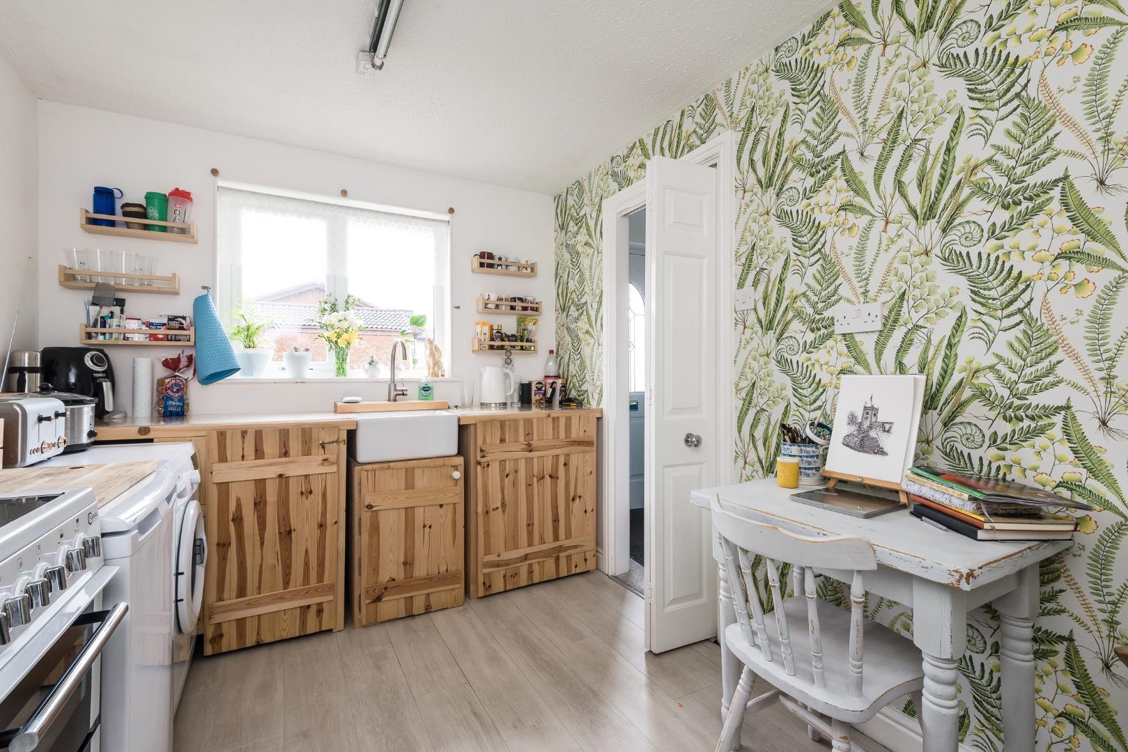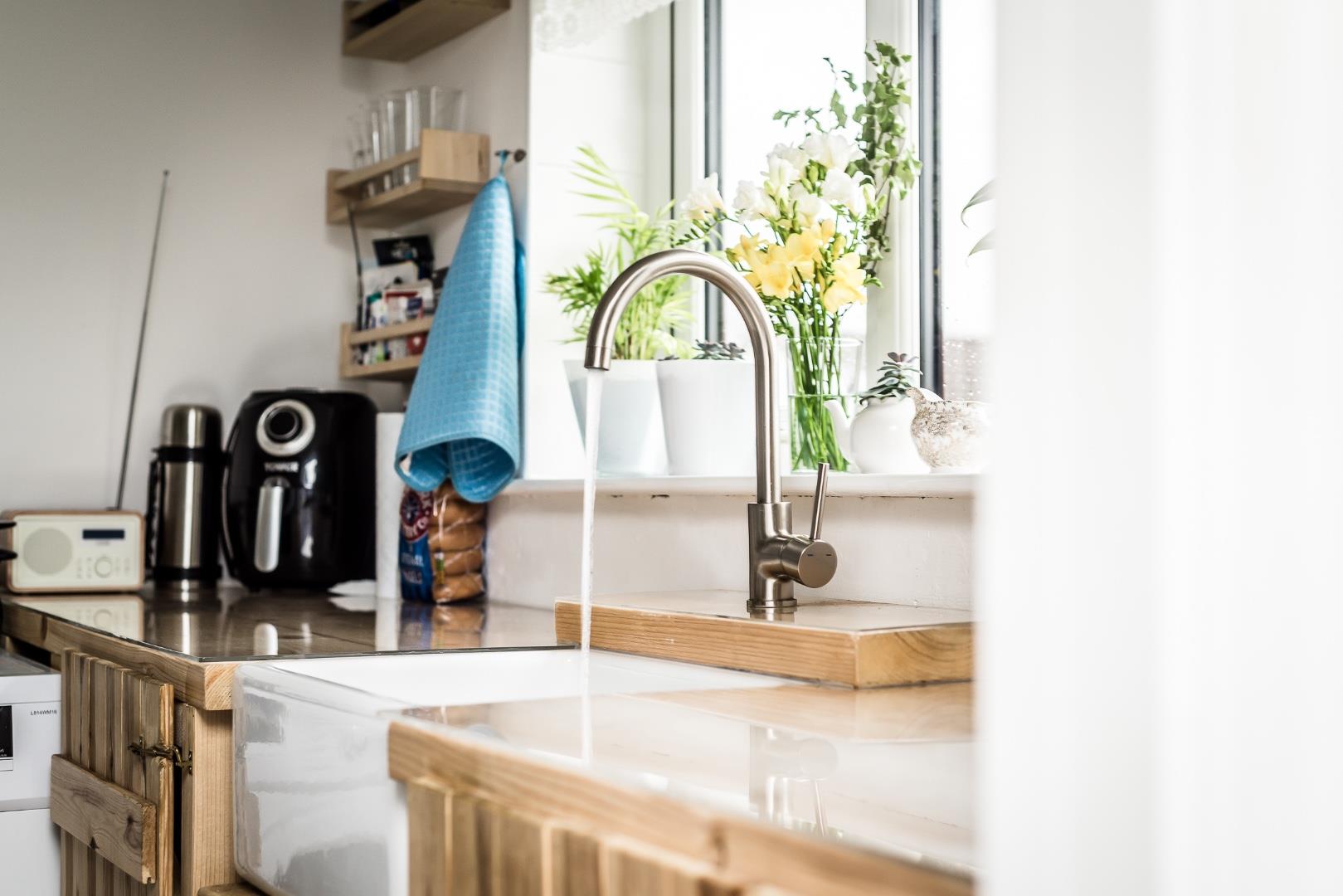 Across the hall and opposite the lounge is the kitchen, where unique handmade wooden units stand proud against the fresh white walls, and a Belfast sink with contemporary mixer tap sits beneath a window overlooking the front – a nice spot to ponder whilst doing the washing up. The rest of the space in the kitchen is flexible, owing to the fact the appliances are freestanding, allowing you to configure the rest of the room however you please! Perhaps a breakfast bar or a neat little dining table would fit well?
