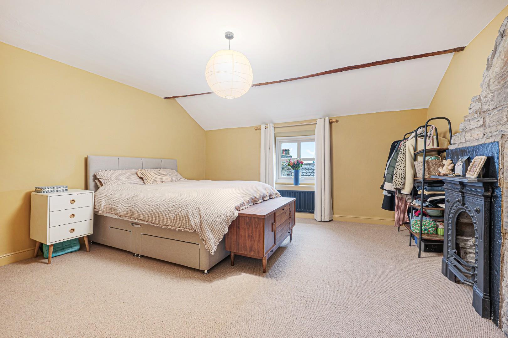 On the first floor are two double bedrooms and a family bathroom. The master bedroom is positioned to the front of the house and benefits from lovely scenic views, plenty of natural light with fabulous sunsets, and is a very generous double size. The character continues in both bedrooms too, with exposed stone chimney breasts adding a rustic touch, and contemporary decoration presented in excellent condition. Like the lounge, both bedrooms benefit from new carpets being installed in 2025.