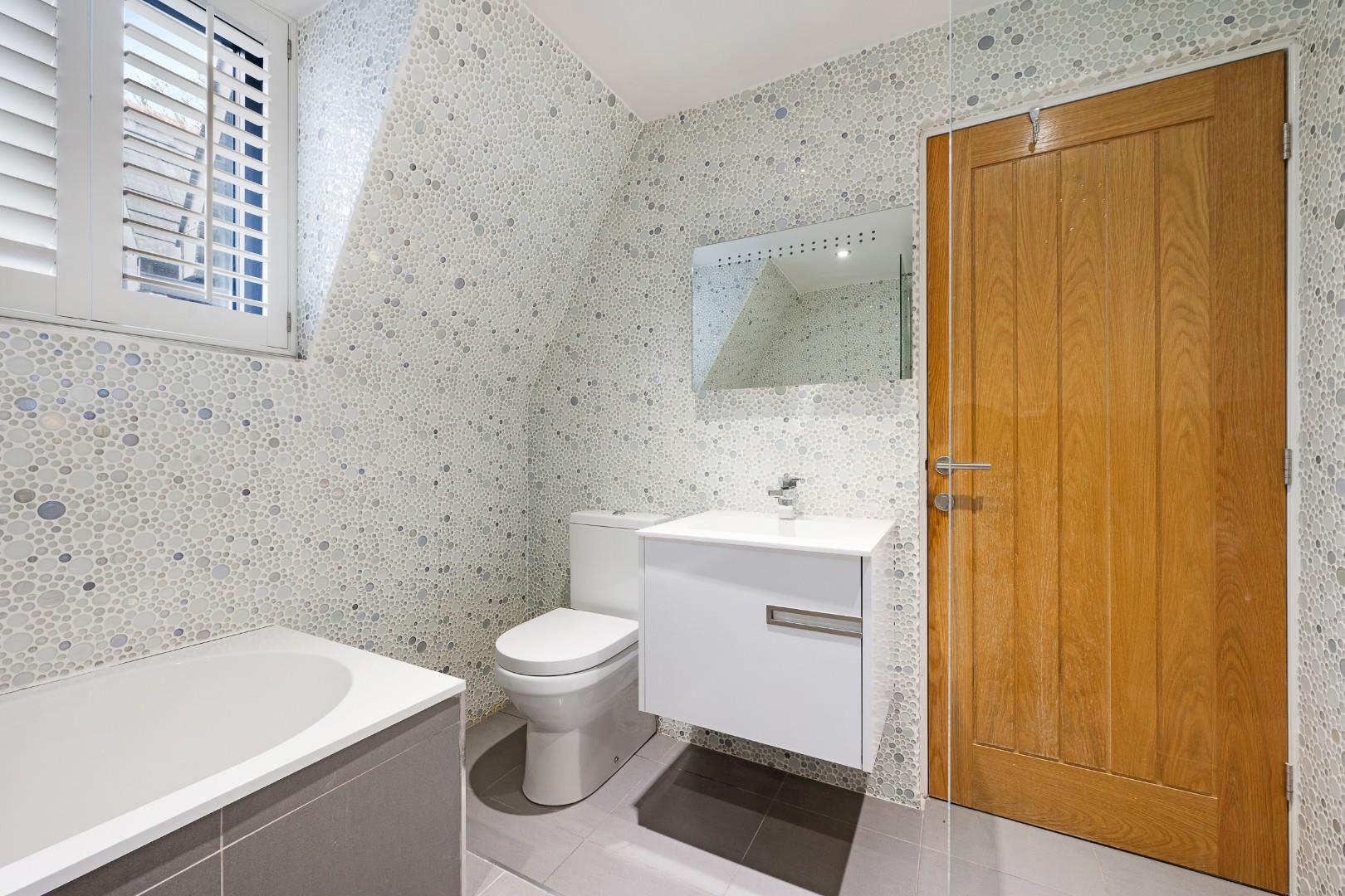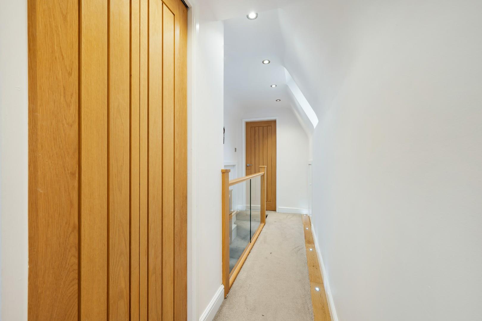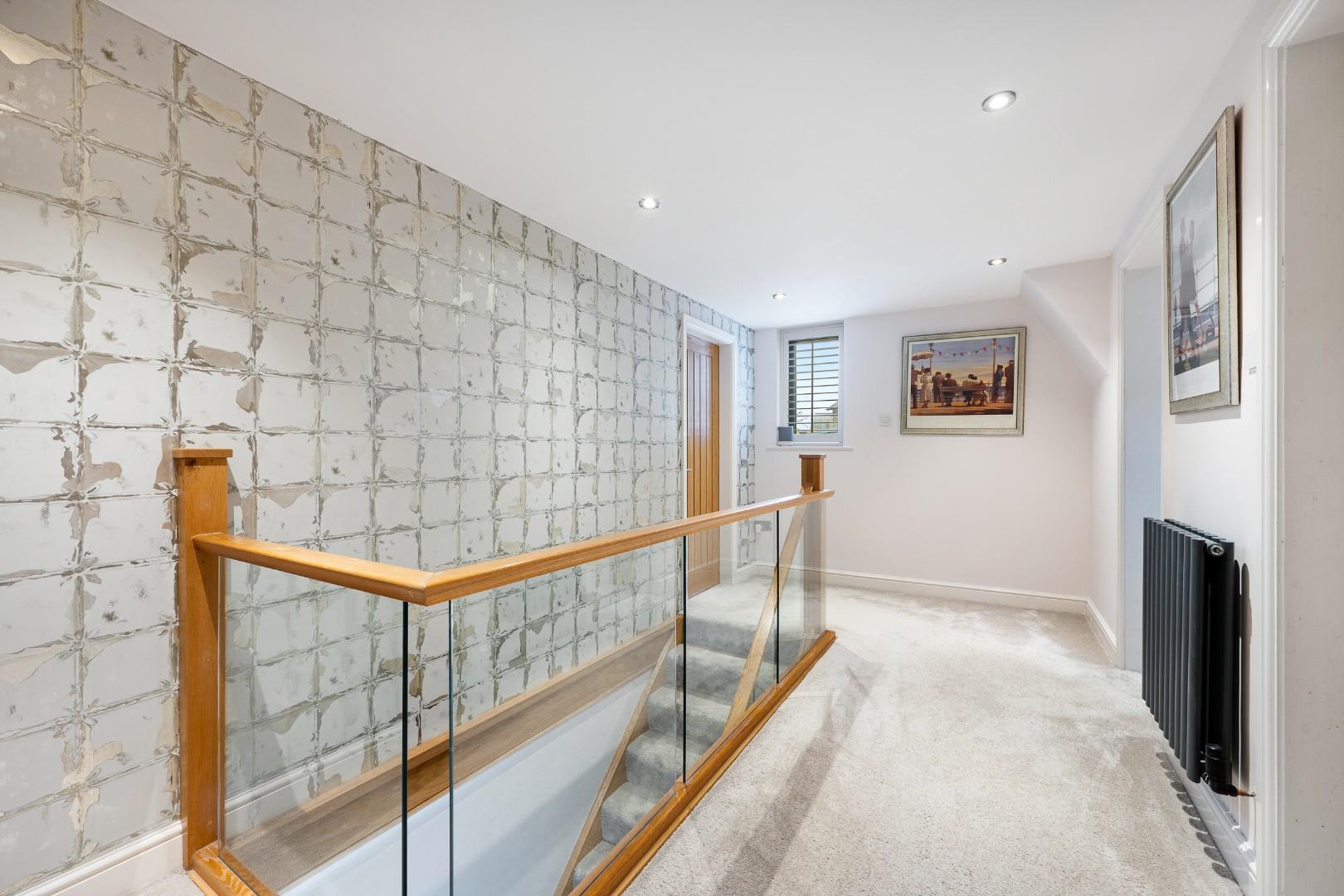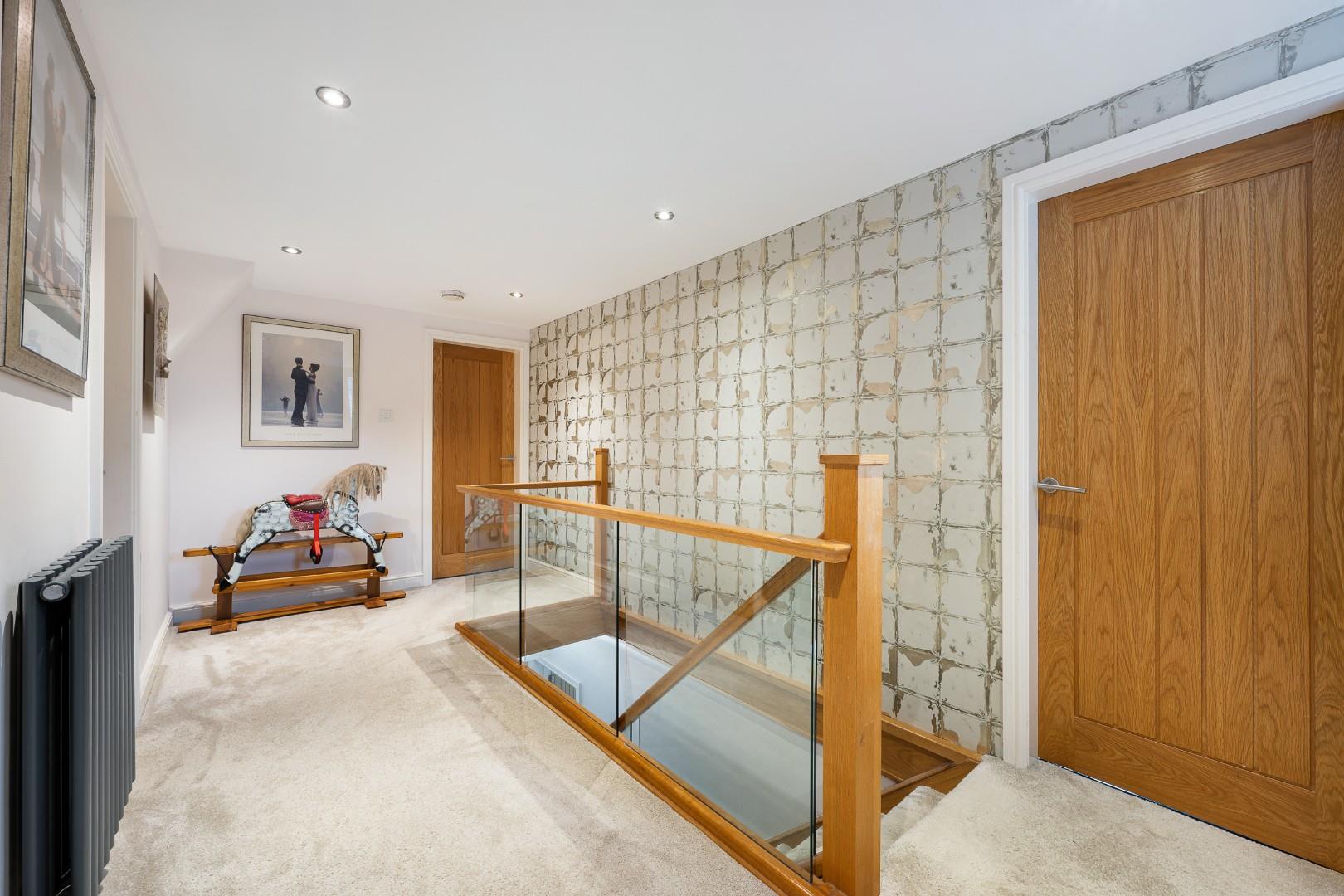 Also on the ground floor is a substantial home office featuring a striking arched window overlooking the garden. This versatile space could also serve as a playroom or snug.