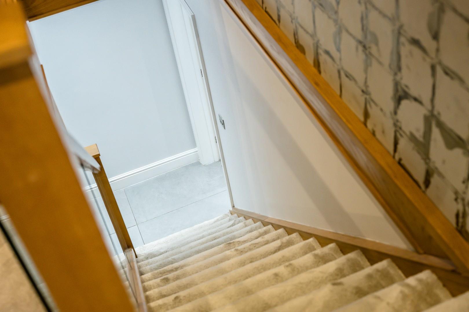 From the hobby room, a bespoke Neville Johnson oak staircase ascends to the upper floor, creating an ideal space for older children or guests seeking a little more independence.