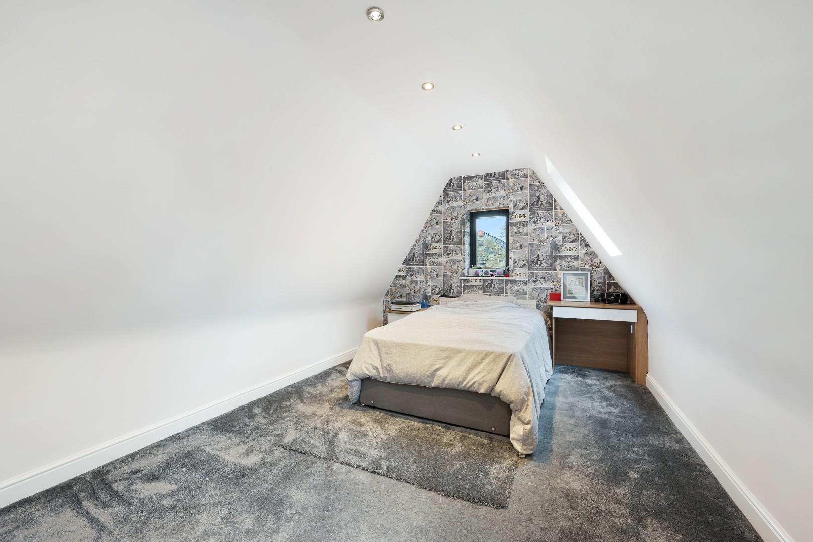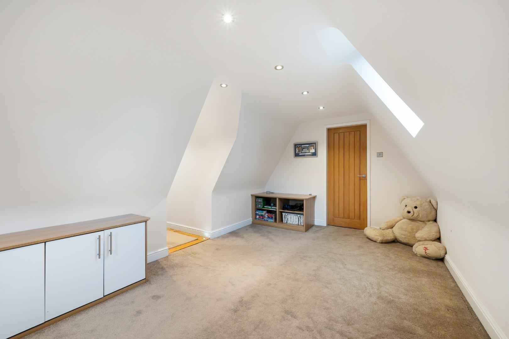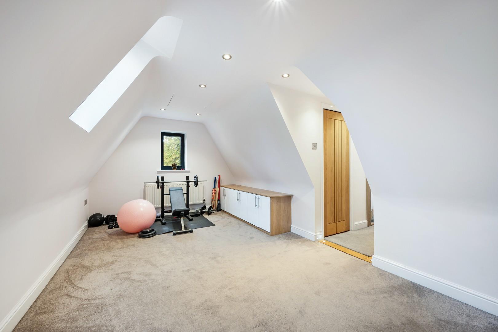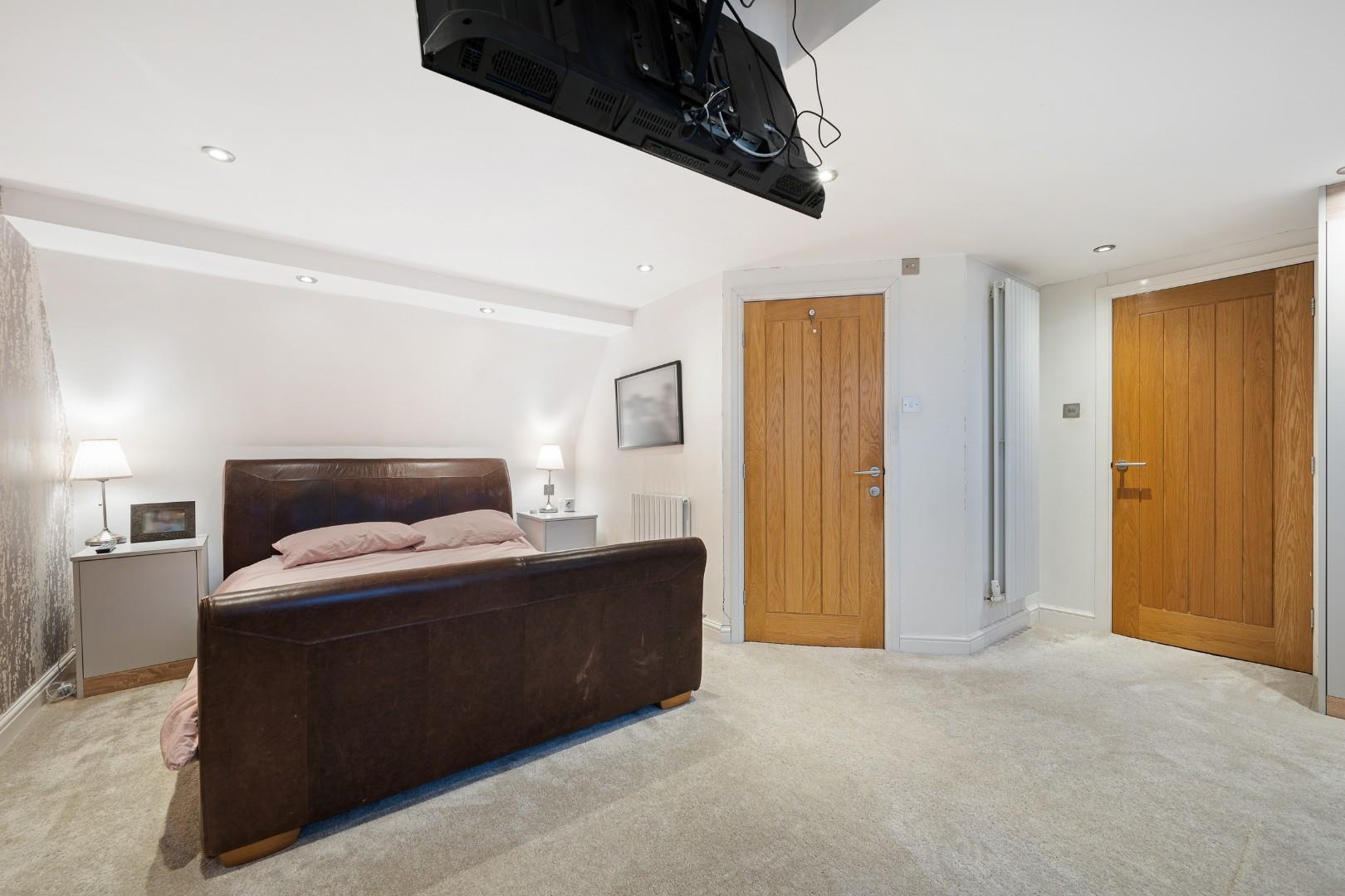 The top floor includes an additional WC and a versatile multi-purpose room, well-suited for use as an exercise room, third office or study area, or even a games room. Two further bedrooms complete this level, each featuring fitted storage, sloped ceilings, and a unique characterful design, making this an ideal partially self-contained retreat within the home if desired.