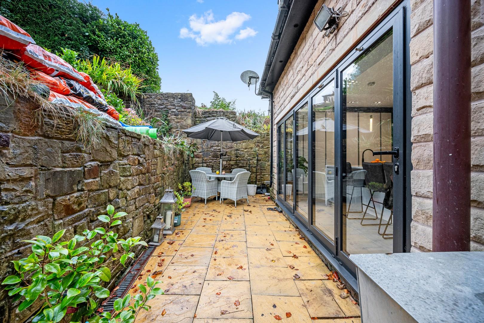 The gated drive to the front gives ample space for private parking, and the generous gardens to the side and rear of the home offer a huge space that has fantastic landscaping potential. Immediately outside the bifold doors is a paved patio area ideal for enjoying that indoor outdoor lifestyle on warm summer days. Stroll up the garden steps and much of the garden is situated on the upper level, providing two substantial and secluded lawns that get plenty of sun, and a spacious summerhouse. The lawns offer heaps of space for the kids to play safely, and for those who enjoy gardening you could be kept busy for days on end if you wished! Though its current configuration allows it to be relatively low maintenance and easy to manage.