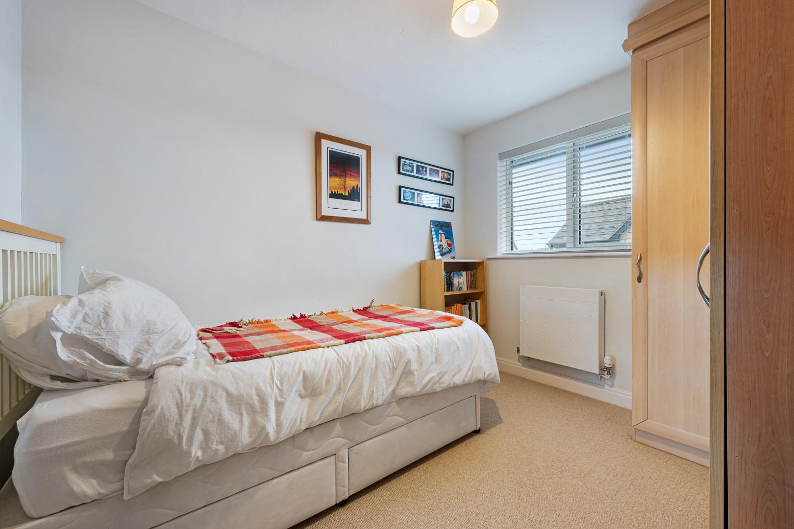 Upstairs, the four bedrooms are all well proportioned and presented to the same modern standard as the ground floor living space. One of the bedrooms benefits from a three-piece shower en suite and fitted wardrobes. The third bedroom also benefits from fitted wardrobes, while the master bedroom features a lovely Juliet balcony overlooking the rear garden. The remaining bedroom is a good-sized double with a unique design, featuring a distinctive feature window and offering excellent flexibility for family use or home working. The family bathroom is a beautifully presented modern space too, showcasing a bath with shower over, WC, and vanity basin with backlit mirror.